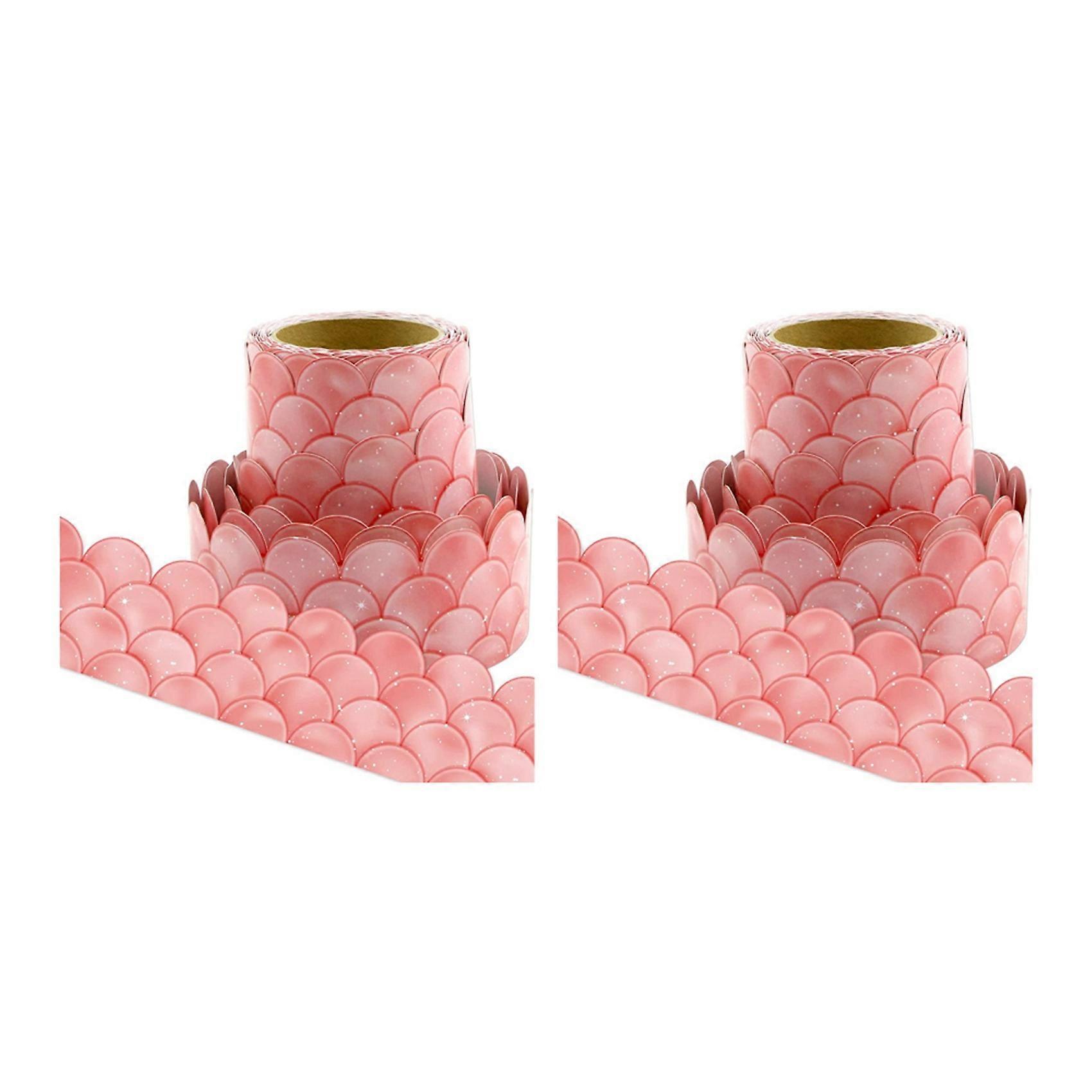 2pcs 20M Ombre Pink Scallops Bulletin Board Borders Rainbow Straight Borders Classroom or Home School Decoration