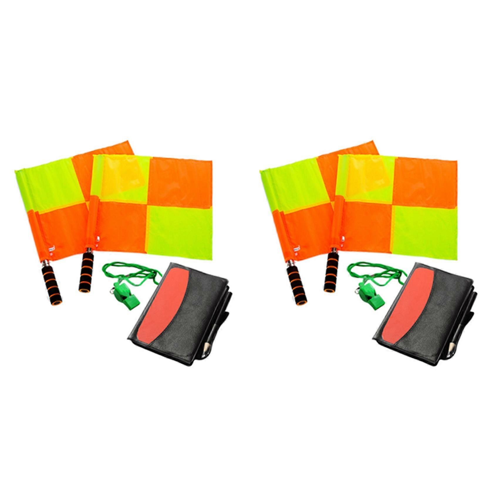2X Soccer Referee Kit Football Checkered Soccer Flags Wallet Notebook with Red Yellow Card and Whistle