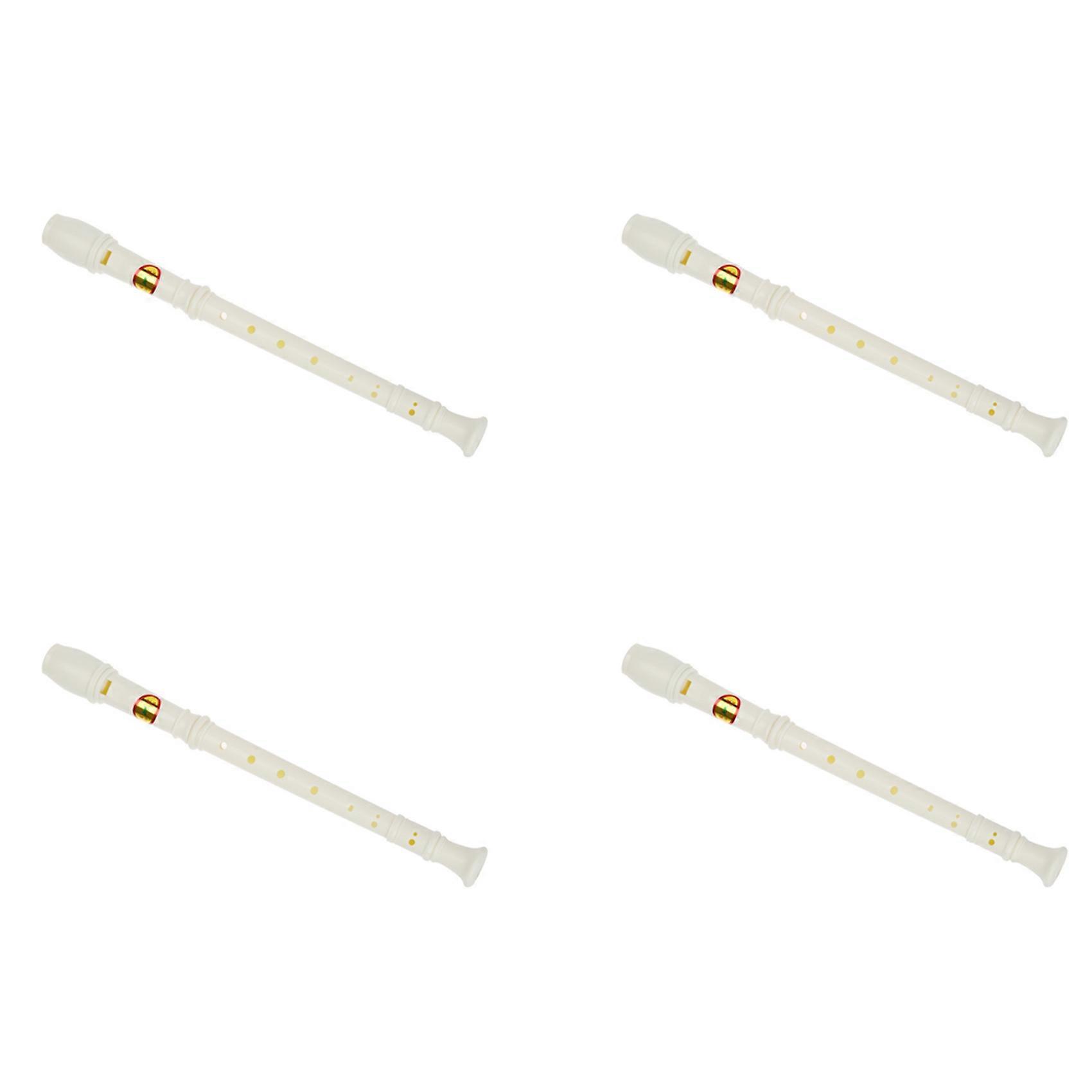 4X Students Off White Plastic 8 Holes Flute Recorder W Cleaning Stick