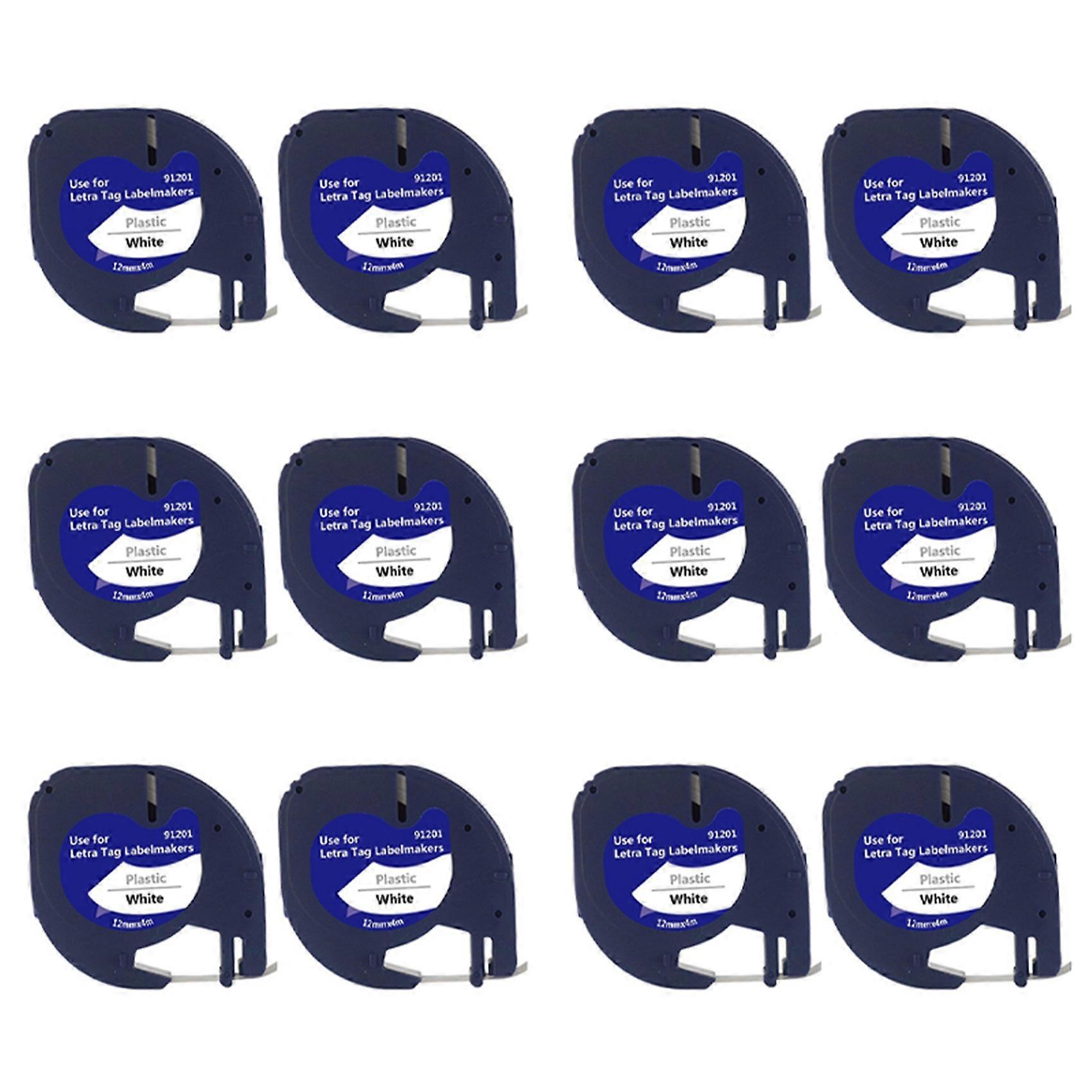 12 Pack Plastic Label Tapes for DYMO LetraTag 91201 Black on White (12mm x 4M) for LT-100H, LT-100T, LT-2000, QX50