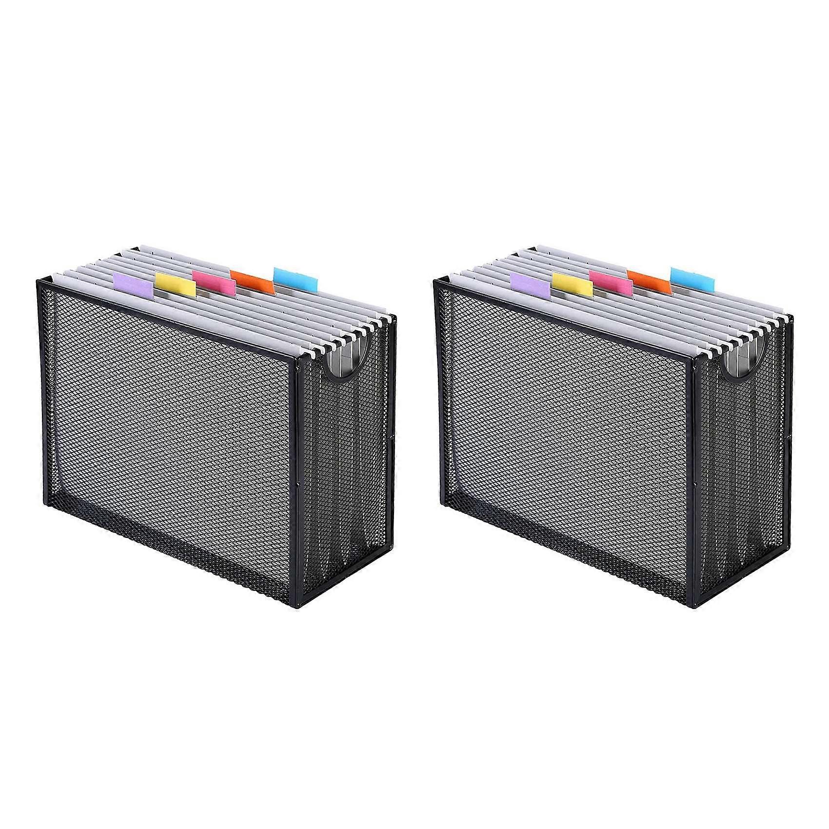 2X Hanging File Organizer Filing Box,Metal Mesh File Crate Desk Organizer Magazine Holder with 10 Hanging Folders