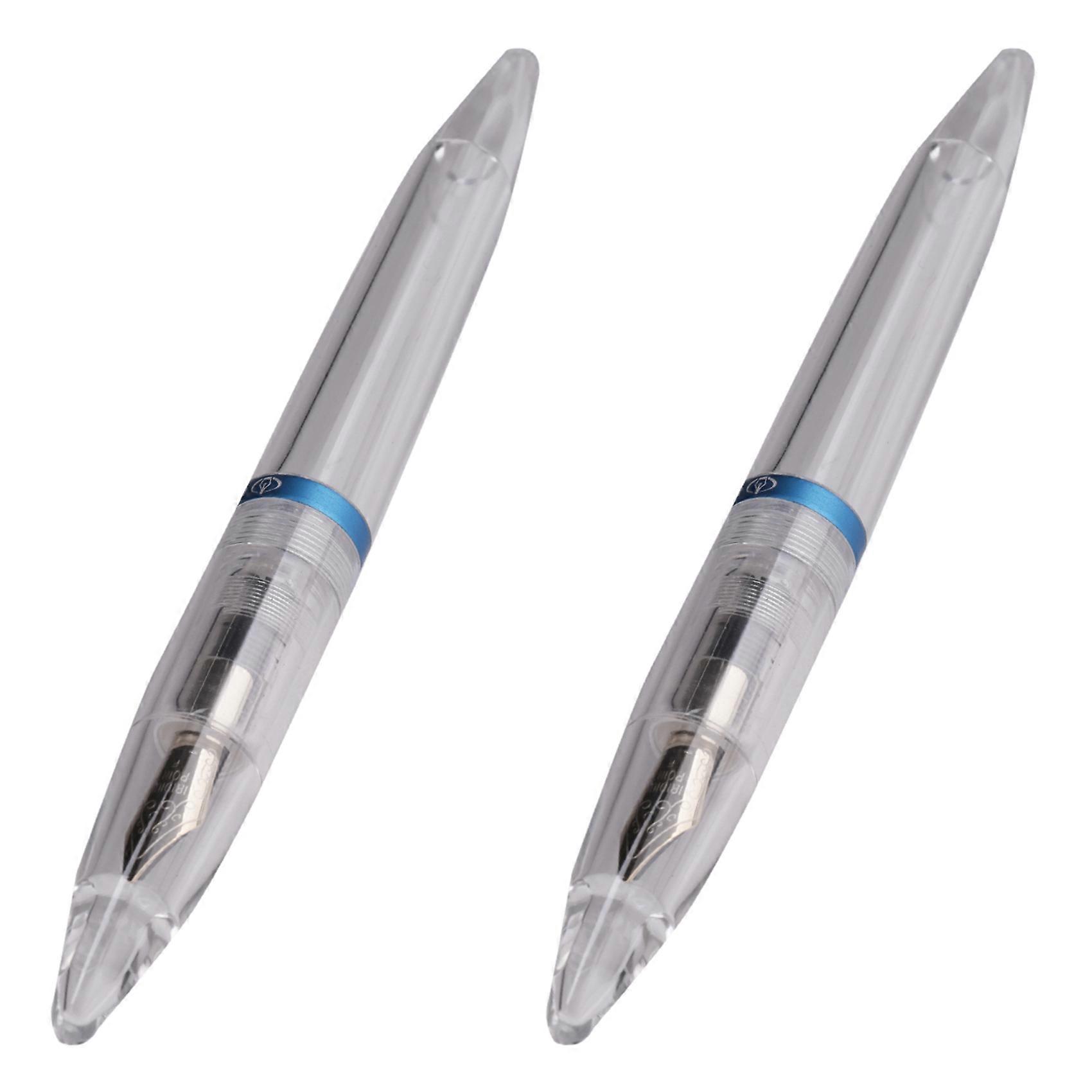 2pcs 0.5mm Nib Fountain Pen with Eyedropper High Capacity Transparent Pens Office School Supplies Blue