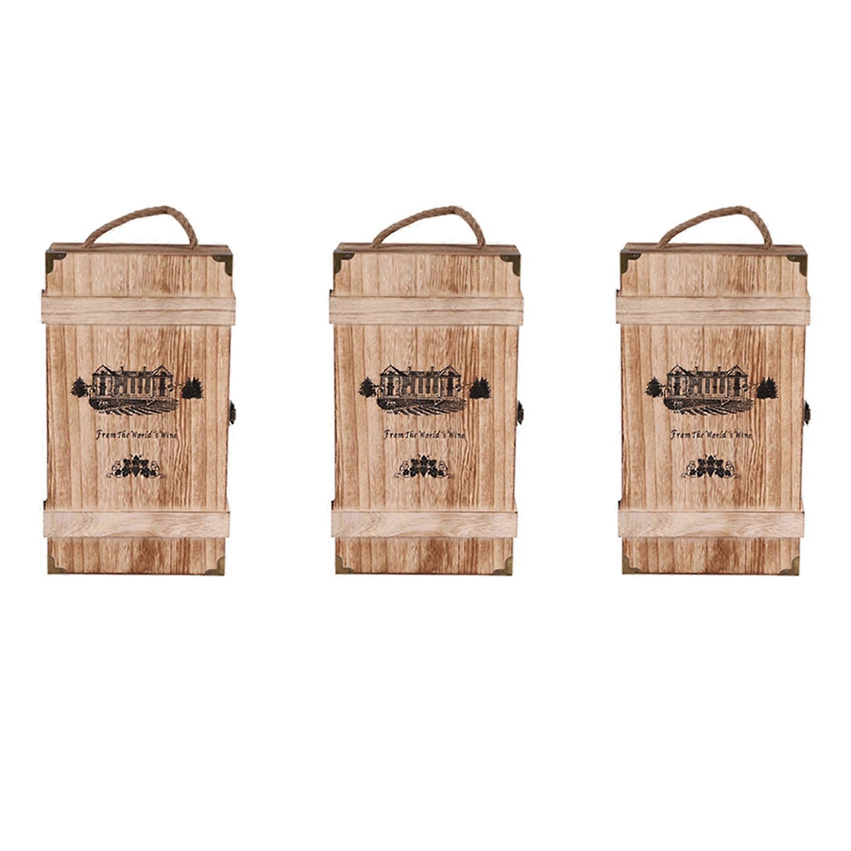 3X Vintage Wood 2 Red Wine Bottle Box Carrier Crate Case Storage Carrying Display Holder Birthday Party Christmas Gift