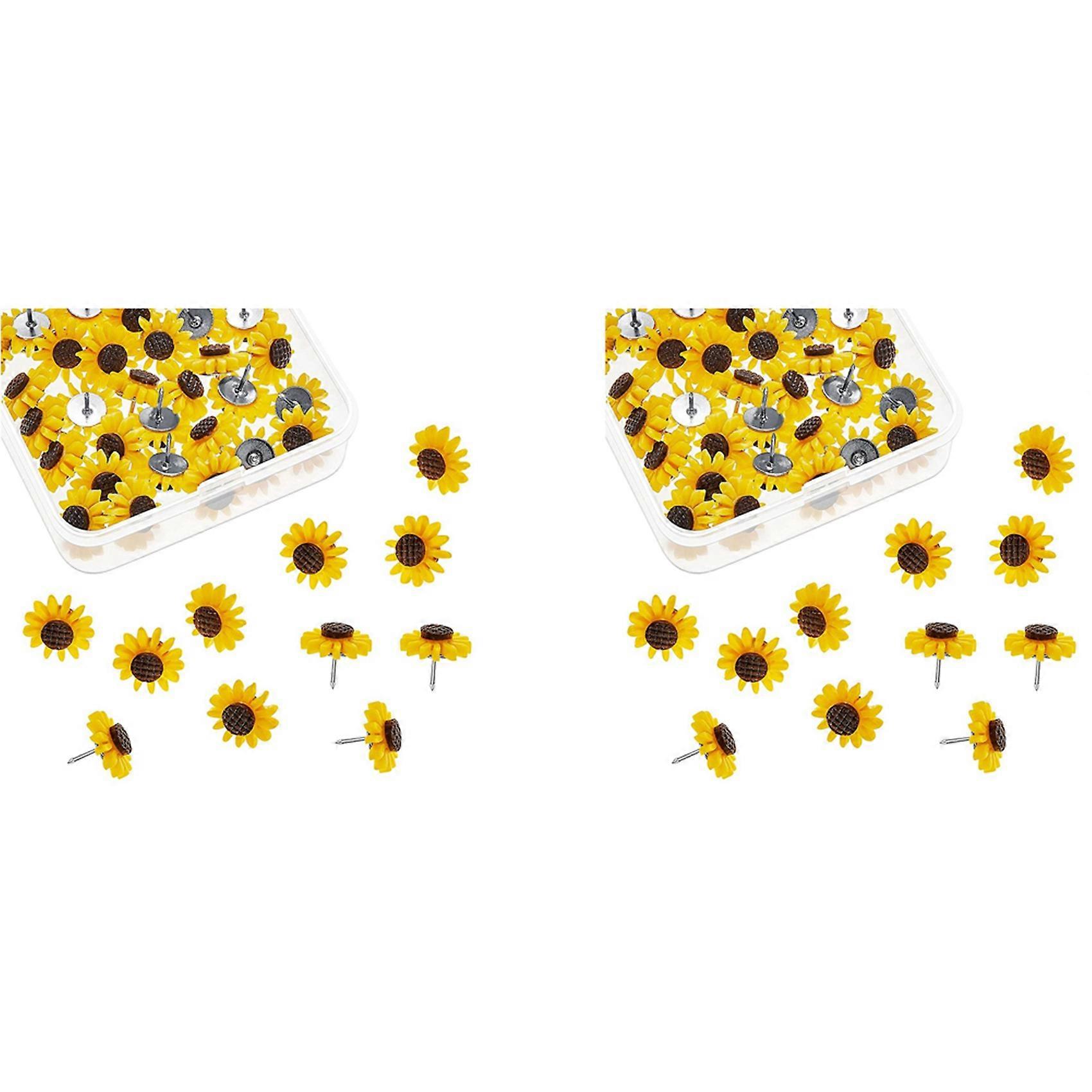 Sunflower Push Pins Sunflower Tacks Flower Cork Board Tacks Sunflower Thumb Tacks for Photos Wall Maps (80PCS)