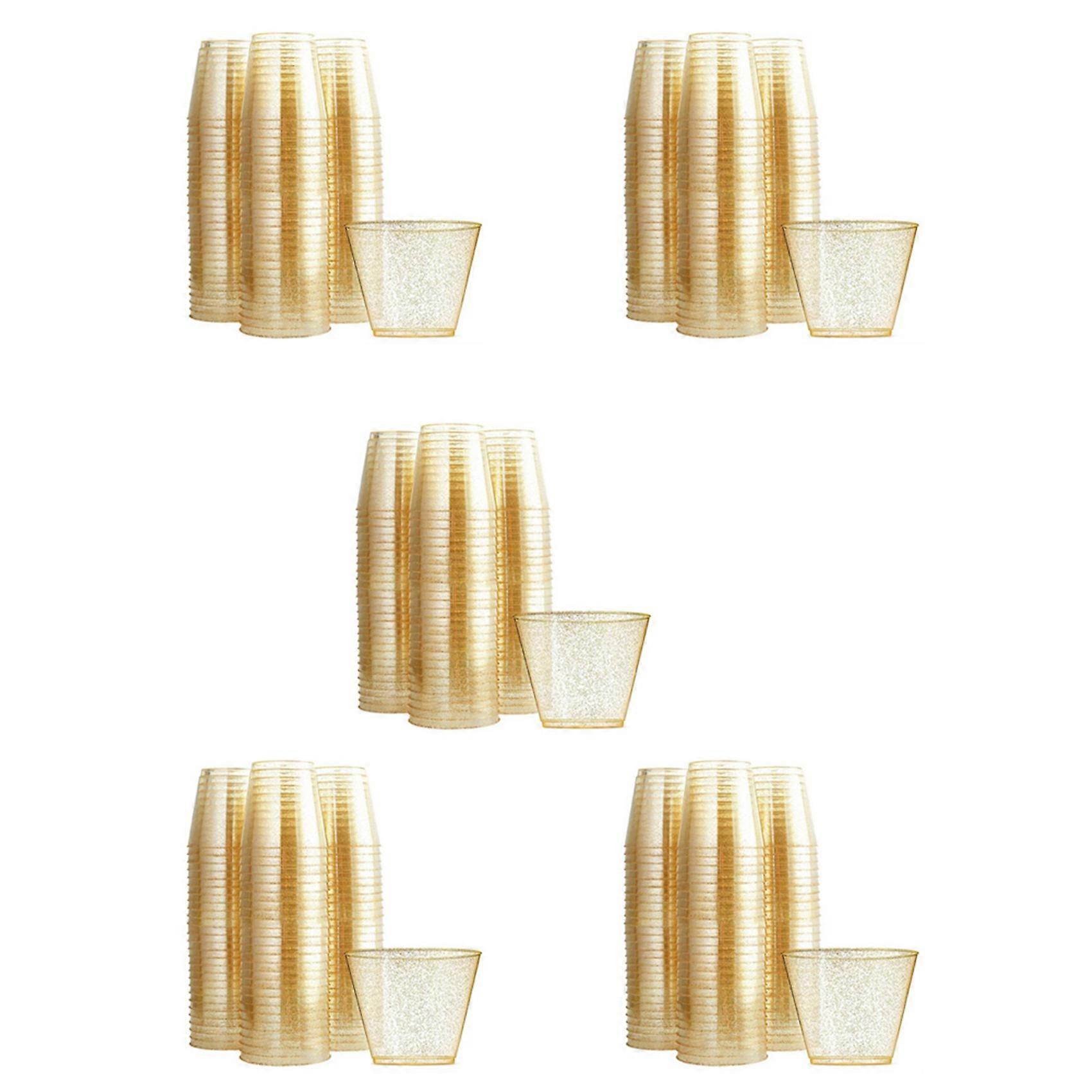 Gold Plastic Cups Clear Plastic Wine Glasses, Fancy Disposable Hard Plastic Cups with Gold Glitter for Party Cups 250Pcs