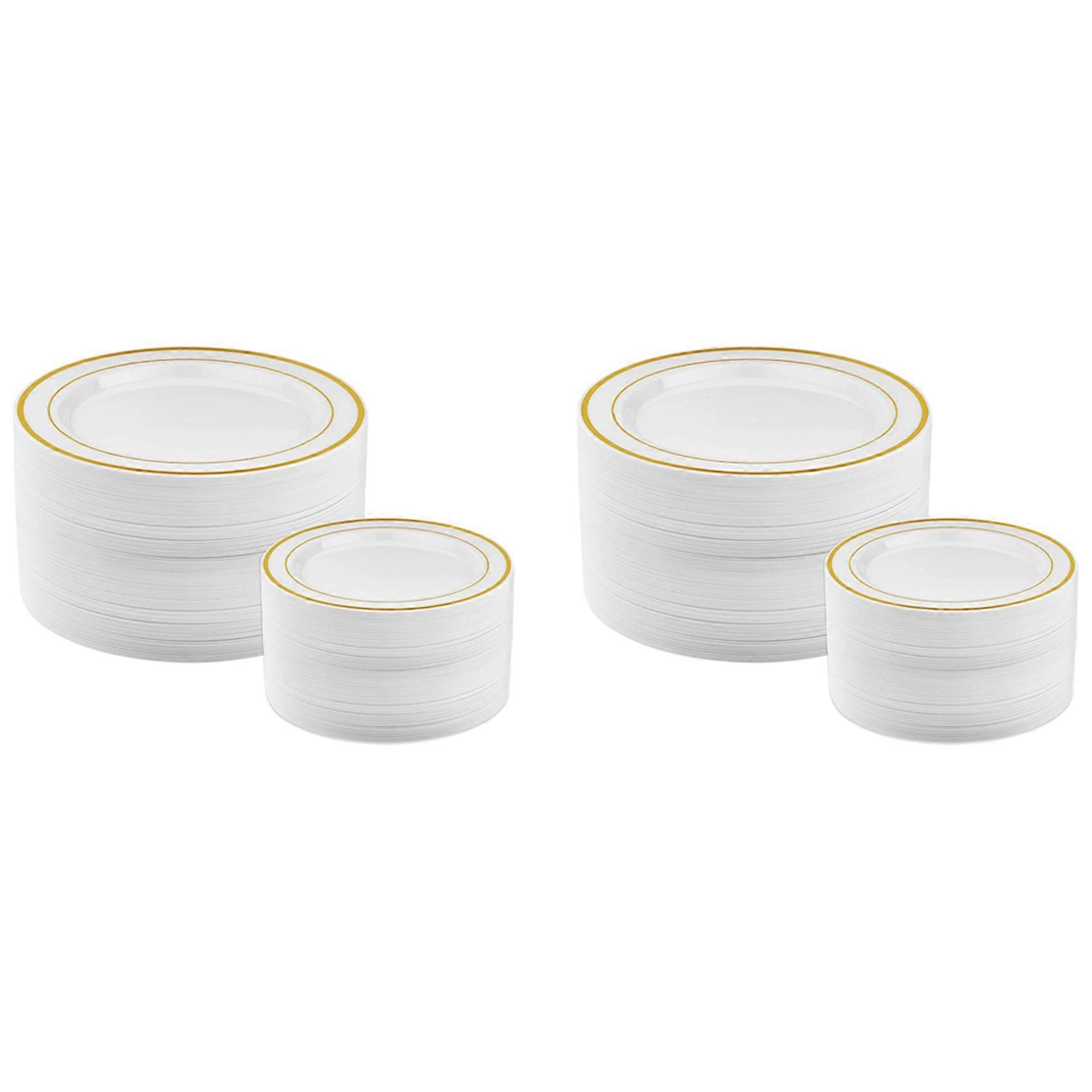 Gold Plastic Plates - 50 Dinner Plates and 50 Salad Plates Party Plastic Plates Disposable Plates for Party