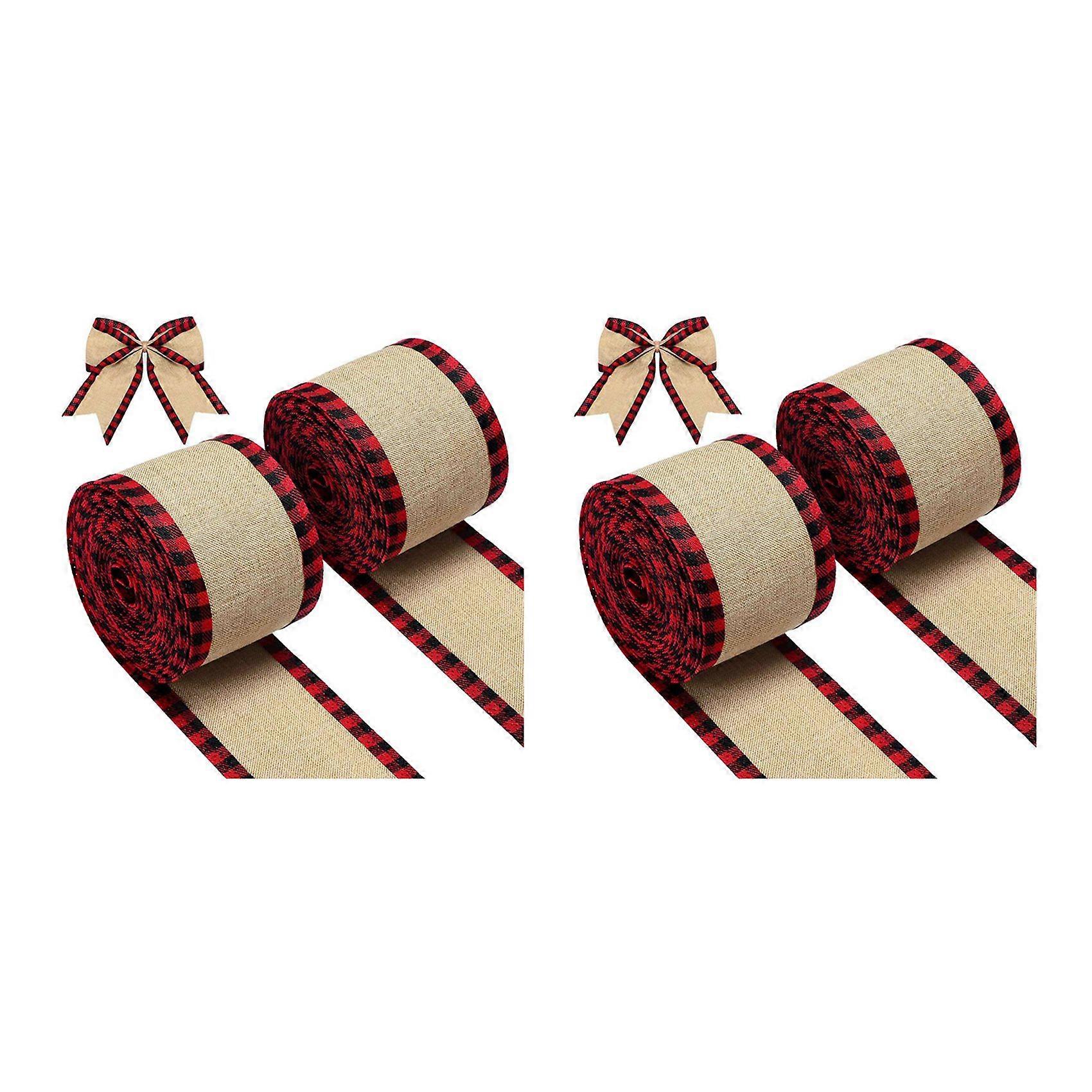 2X Buffalo Plaid Wired Edge Ribbons Christmas Burlap Fabric Craft Ribbon Wrapping Ribbon Rolls with Checkered Edge Red