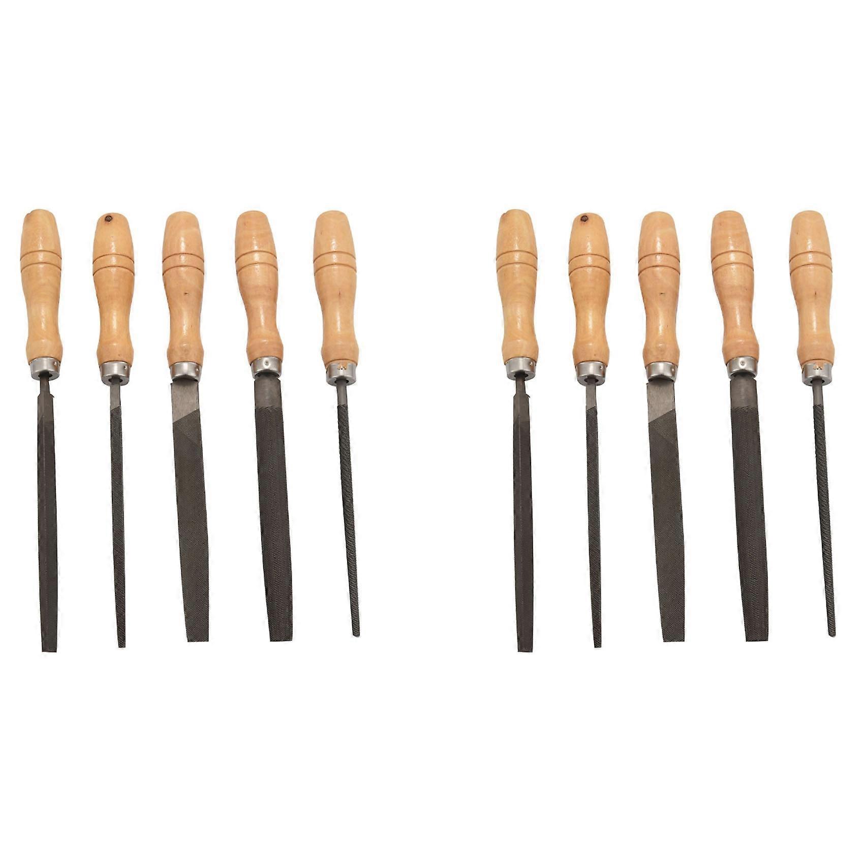 High Carbon Steel File Set with Wooden Handles Rasp File for Wood, Metal, Plastic, 10 Pieces (Steel File)
