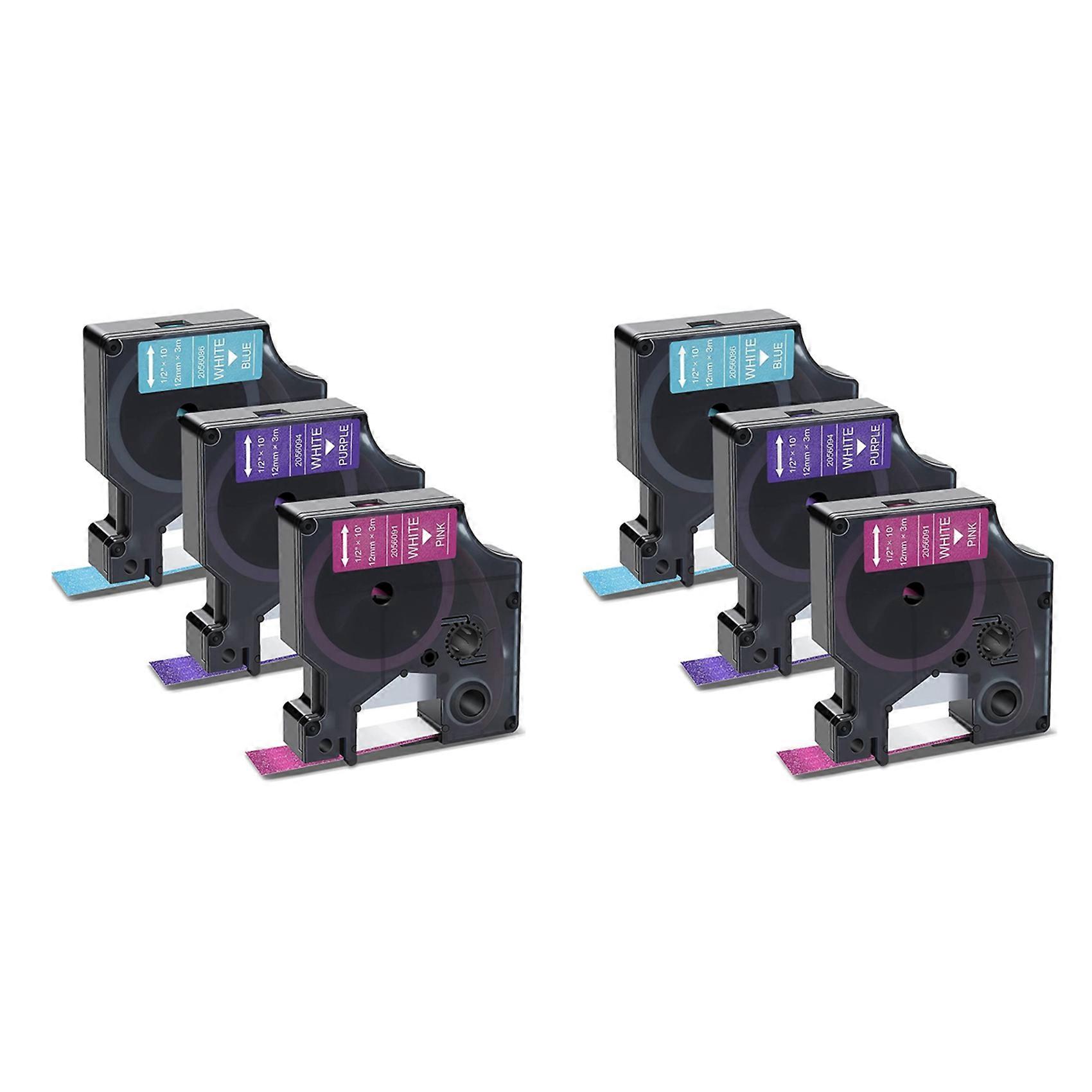 6-Pack for DYMO COLORPOP Label Tape White Print on Blue/Pink/Purple Glitter 12mm for Label Maker, Label Manager 160 280