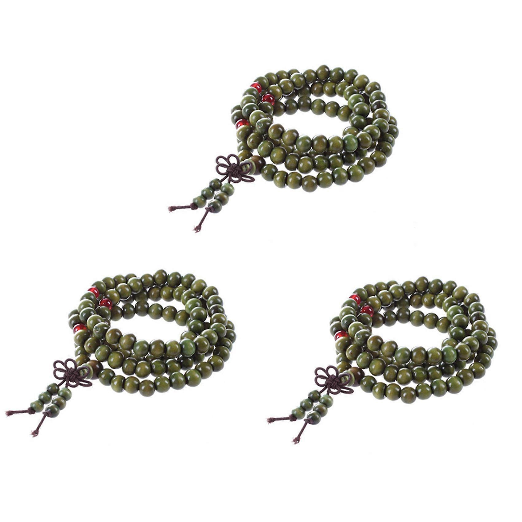 3X Olive Green Sandalwood Beads Buddha Buddhist Mala Stretch Necklace Rosary 29 inch