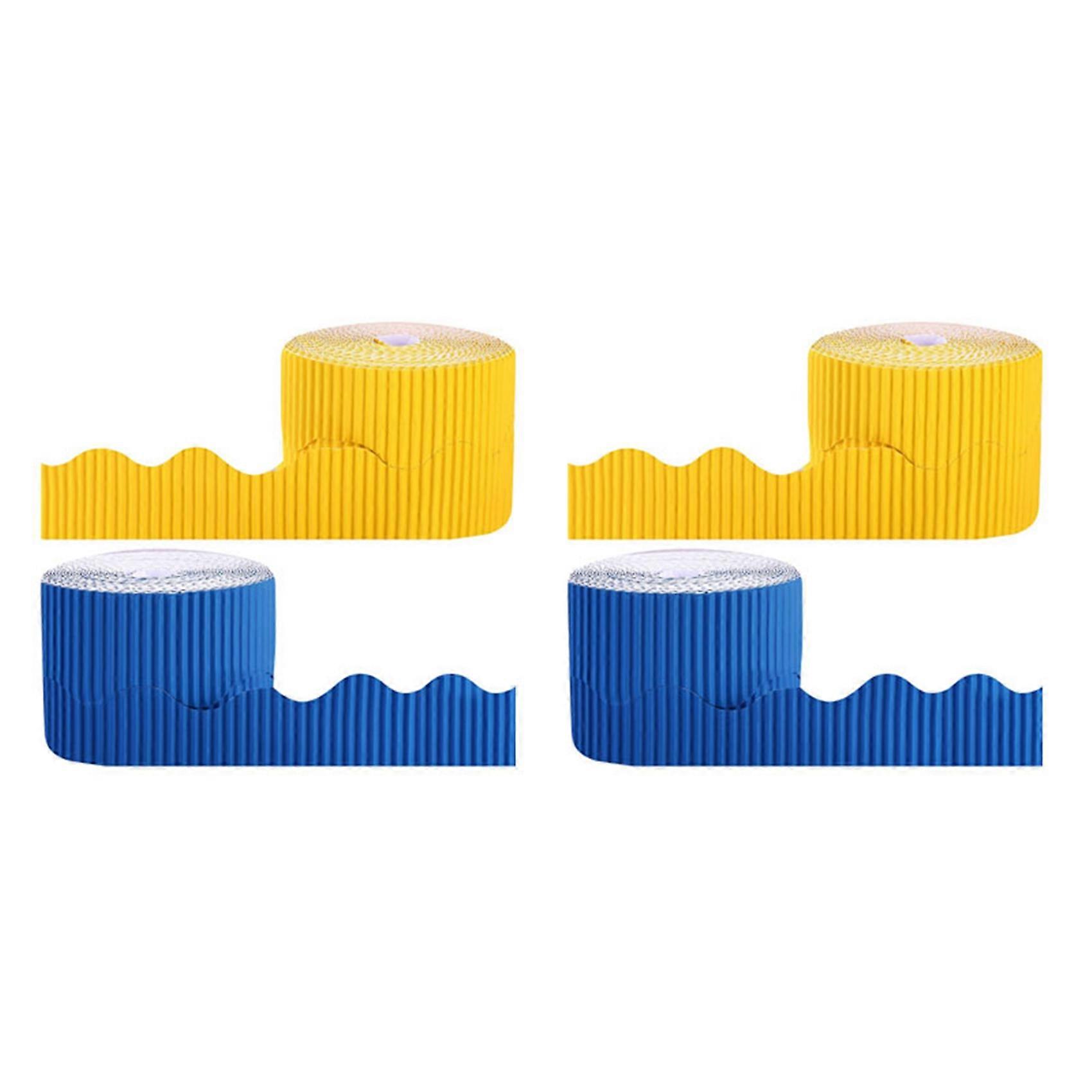 4 Rolls Bulletin Board Borders Scalloped Border Decoration Background Paper for Decorative Borders (Yellow and Blue)