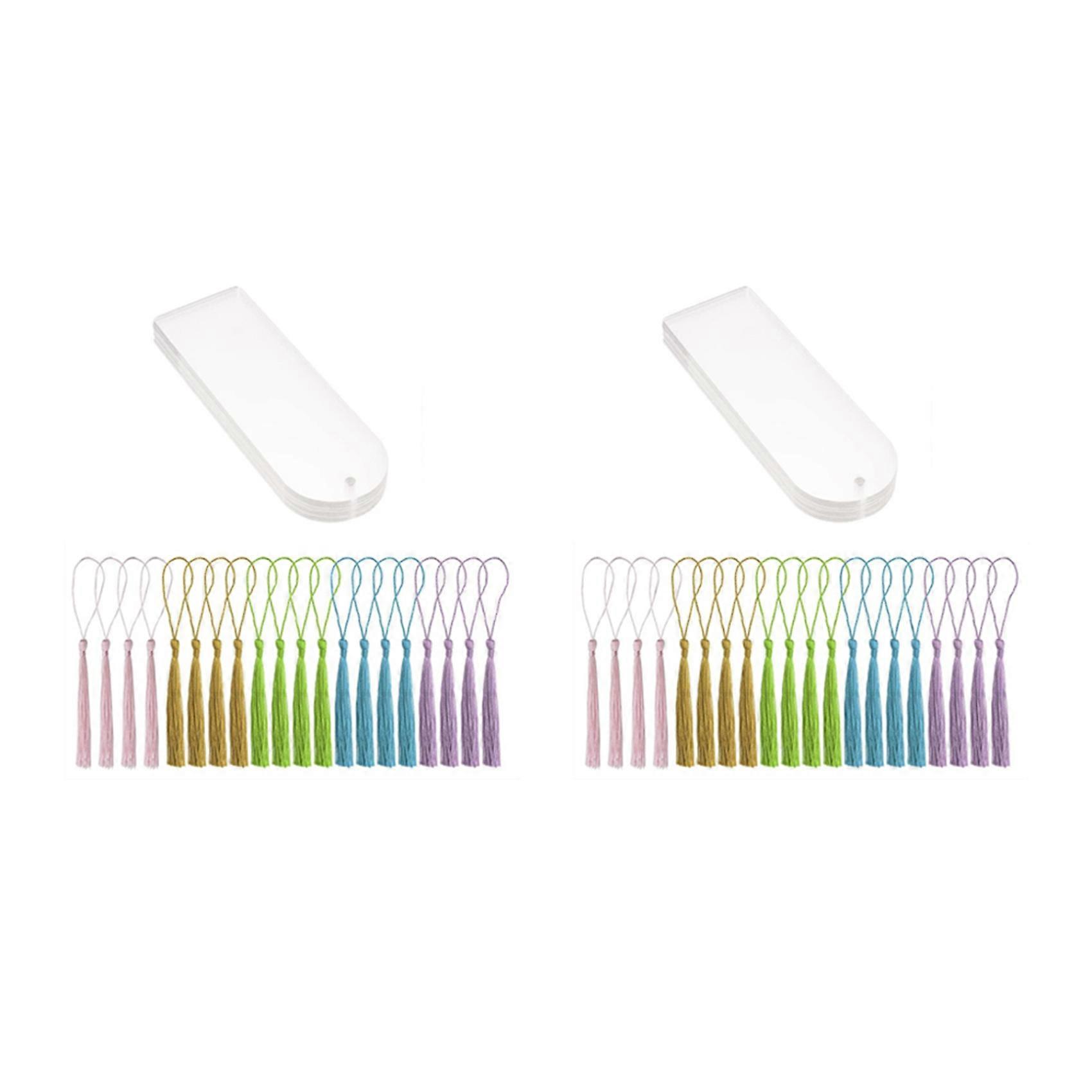 Blank Clear Acrylic Bookmarks 40Pcs Rectangle Craft Transparent Acrylic Book Markers with 40Pcs Small Bookmark Tassels
