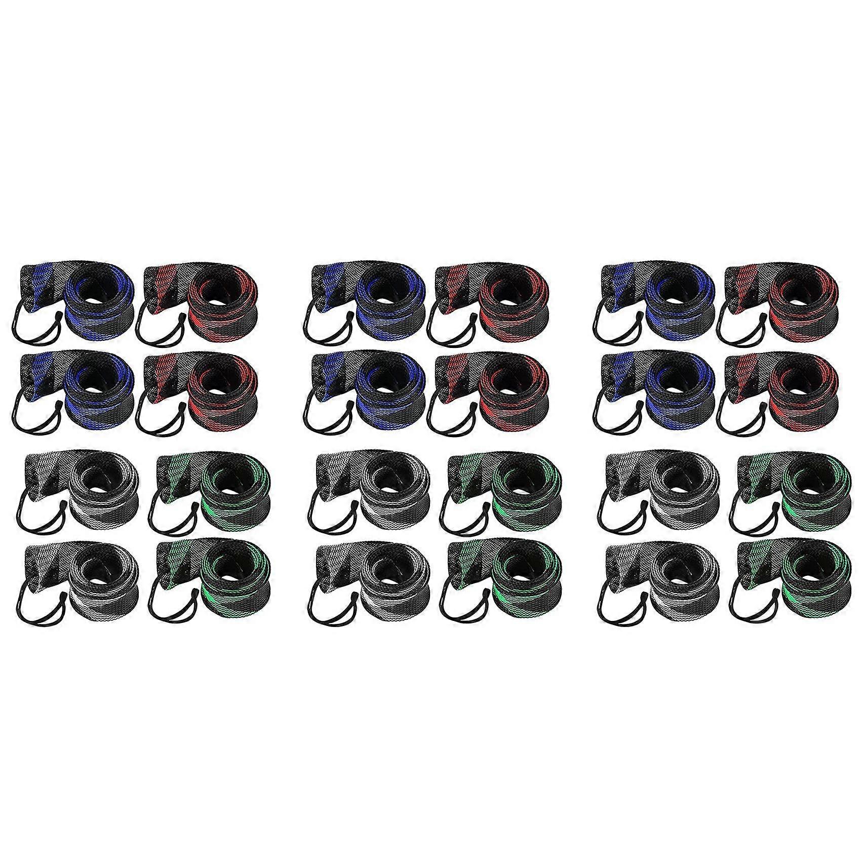 24Pcs Fishing Rod Sleeve Sock,Fishing Rod Cover Scalable Braided Mesh Rod Sleeve Fishing Tools Accessories with Lanyard