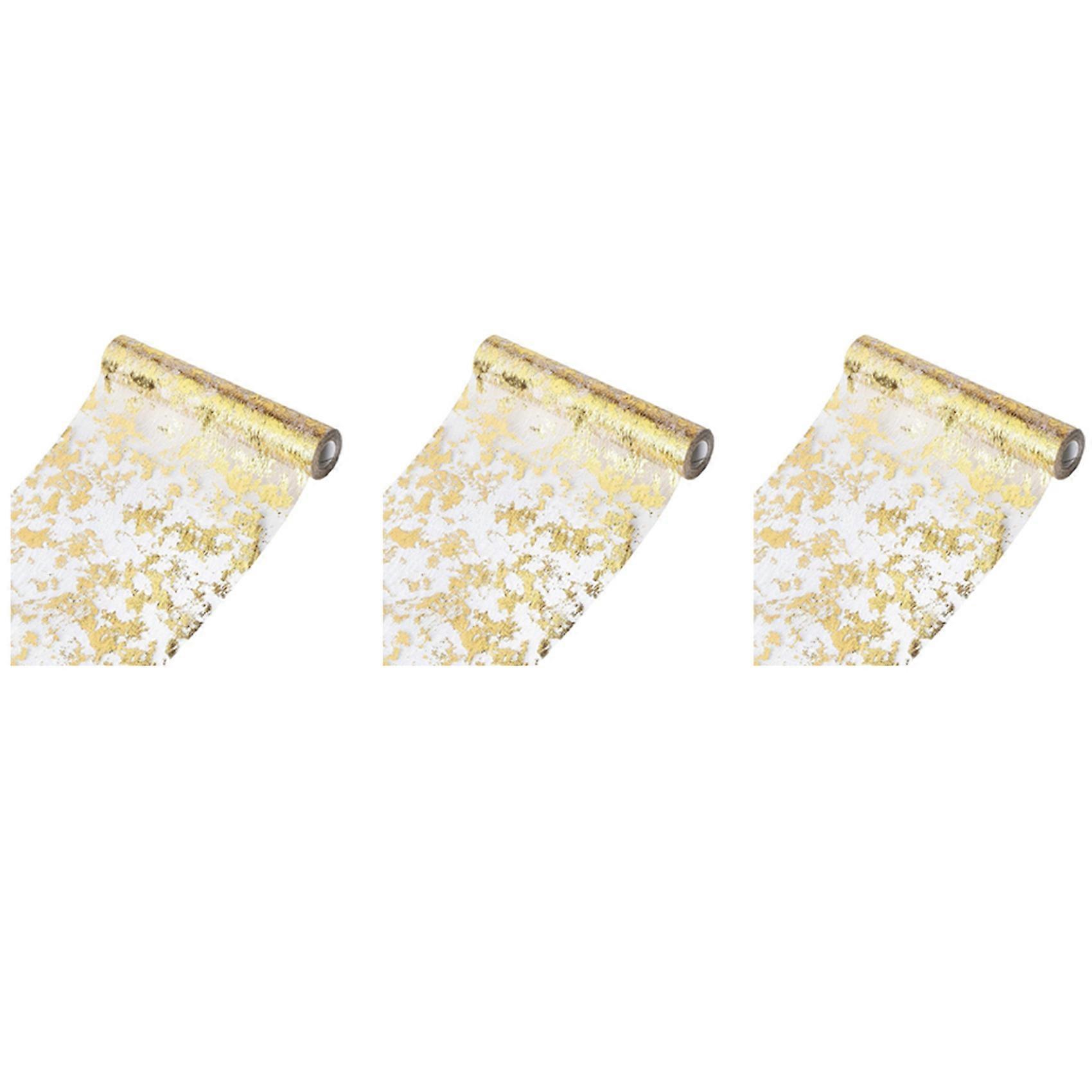 3X Table Runner, Sparkling Polyester Tulle Ribbon Roll with Gold Foil,Birthday Party Wedding Christmas Decor 28cmx5M