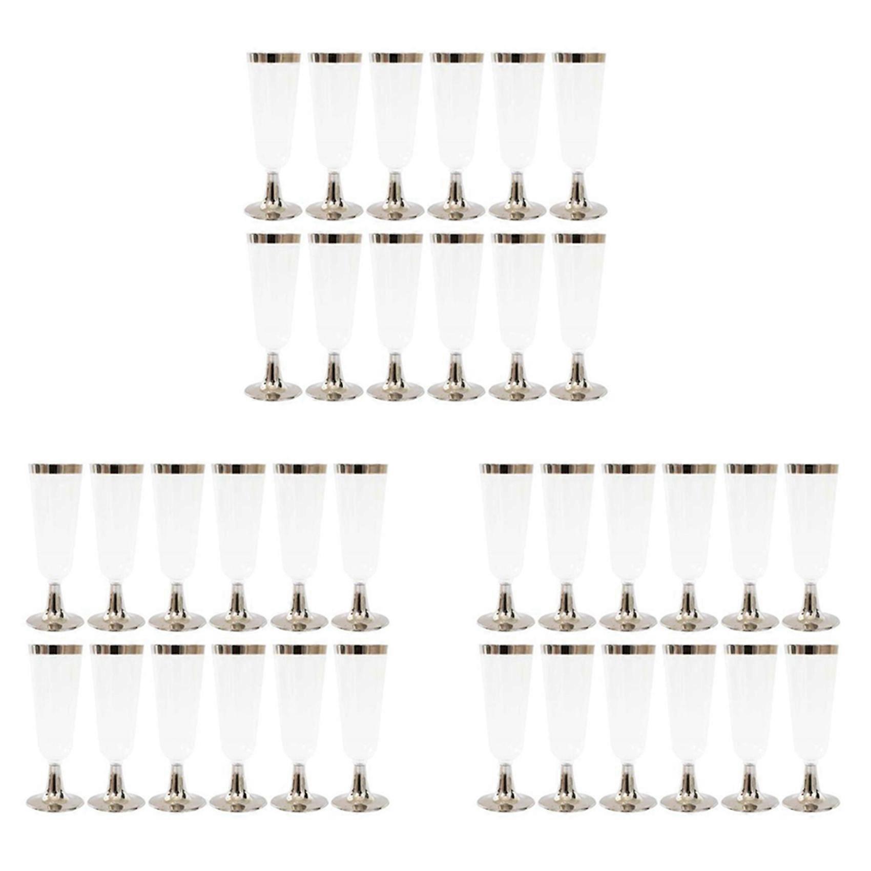 3X Wedding Champagne Flute Creative Disposable Plastic Wedding Cup Champagne Glass Drinking Utensils for Party-Silver