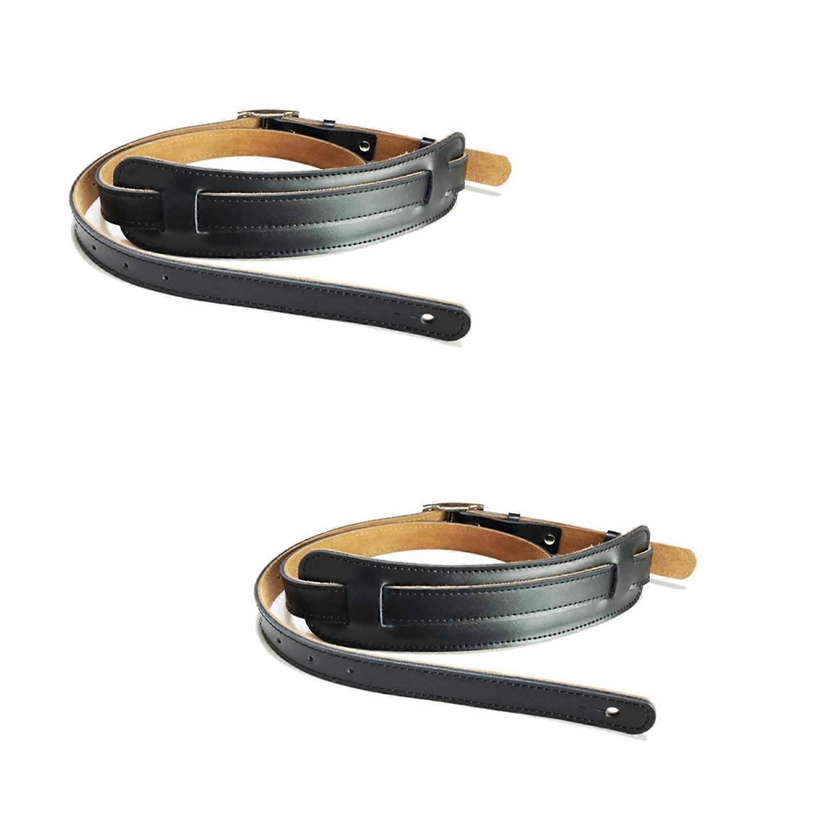 2X Durable Leather and Metal Buckle Electric Guitar Strap Belt Shoulder Pad Adjustable Vintage Guitar Straps-Black Color
