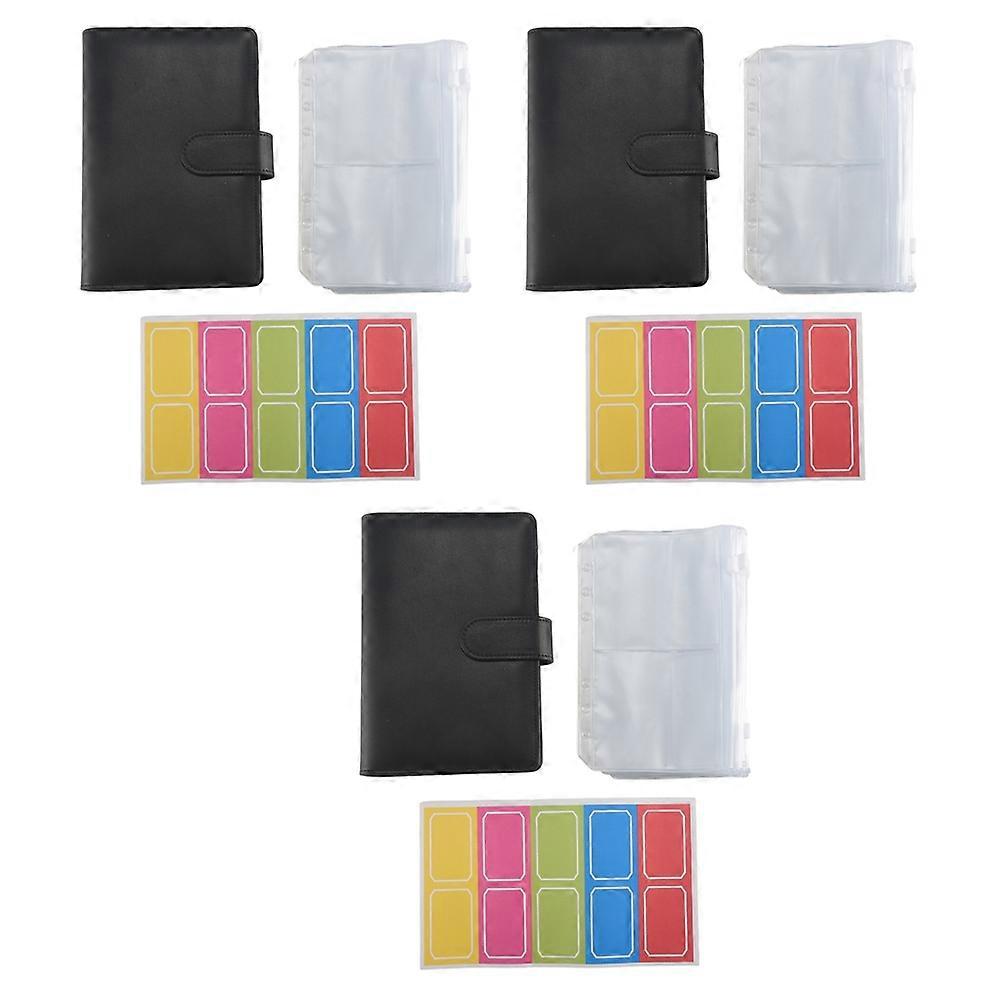 3X 14 Binder Bags A6 with Leather Binder Cover, 6 Rings Budget Binder with Cash Envelope, Money Saving Binder (Black)