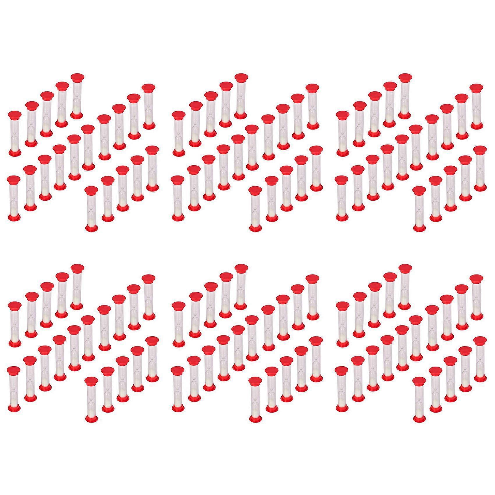 PARTY FAVORS: perfect for birthday theme party, sitting still game, classroom, exercising timer and timing kids' study. Nice decoration for your home and office. Great Gift for children and friends. Perfect supplement when you play games like speak out game, making your game time more exciting. GREAT GIFTS: Wonderful gifts, school class prize, giveaways, hand outs, stocking stuffers, goodie bag fillers. Kids will certainly love these hourglass. MATERIAL: Made of premium plastic and glass. Safe and durable. Our sand timers are protected by quality covers and will not break or leak easily. Unlike cheap copies, the sand in our hourglass goes smoothly and won't get stuck. color: red material: plastic Size: 8.5cm NOTICE: Each sand timer is not a professional timing device. Package Contents: 120 x Sand Timer