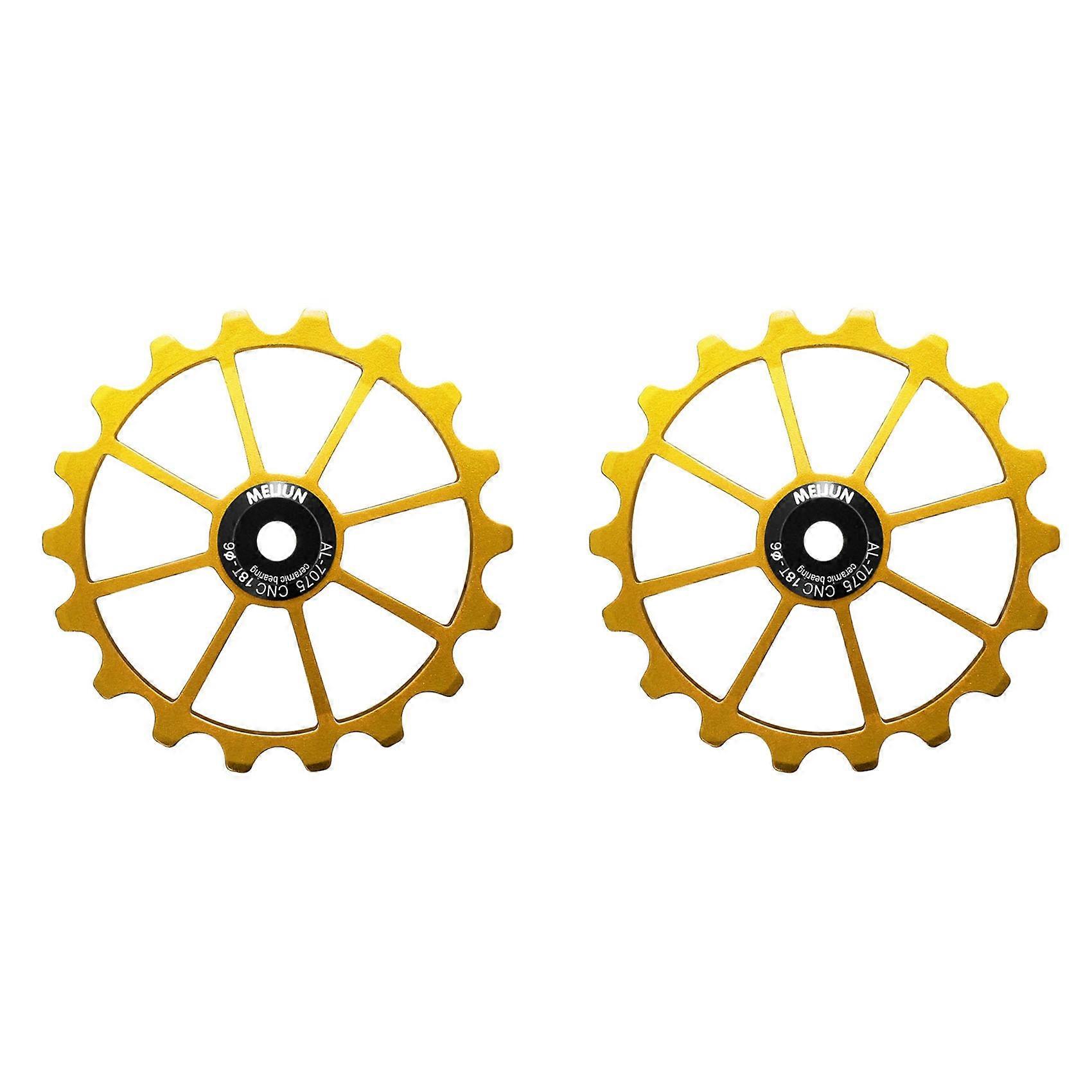 2X MEIJUN 18T Bicycle Rear Derailleur Jockey Wheel Ceramic Bearing Pulley Road Bike Guide Roller Idler 4mm 5mm 6mm(Gold)