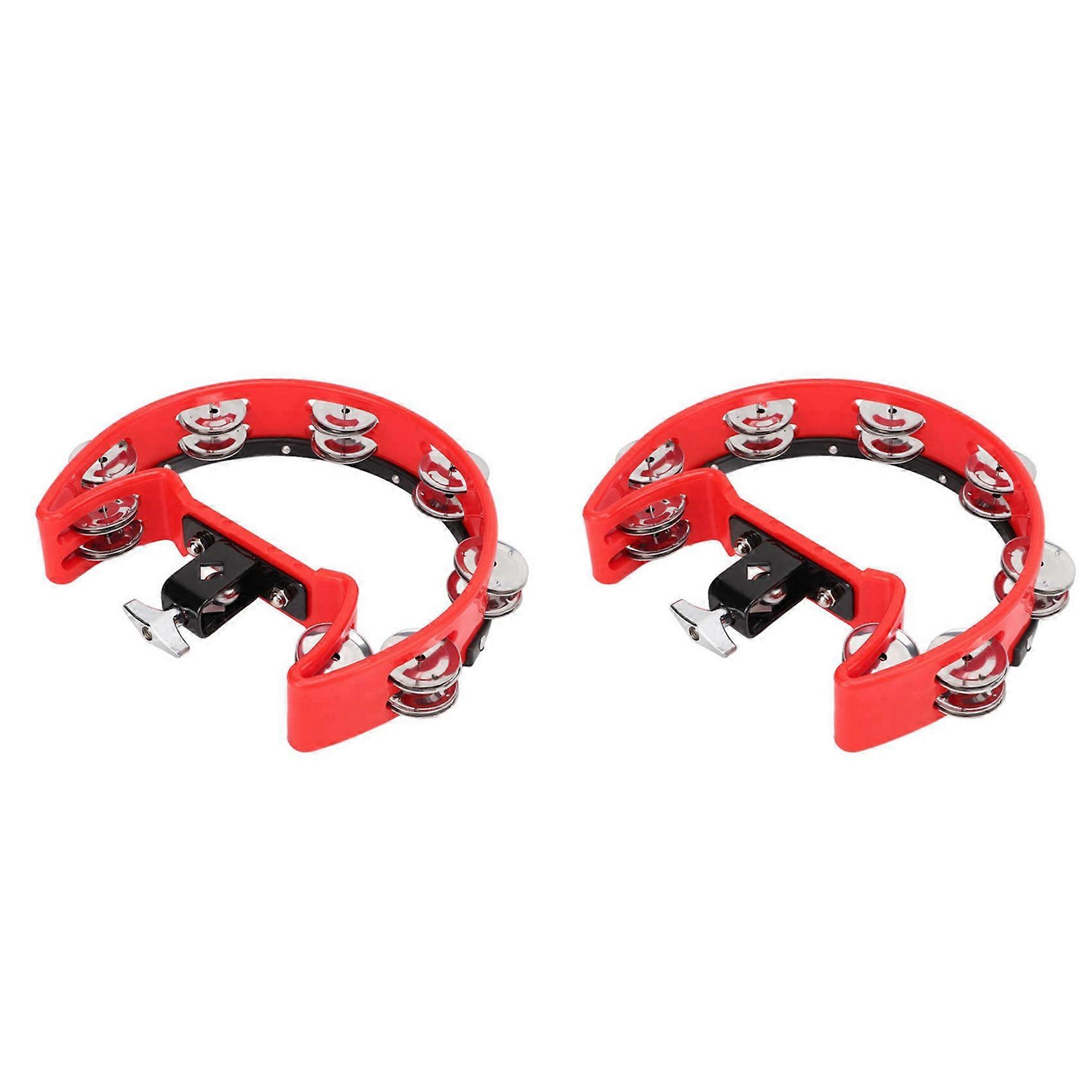 2X Half Moon Music Hand Bell Percussion Instrument Accompaniment Hand Rattle Percussion Instrument Parts Tambourine, Red