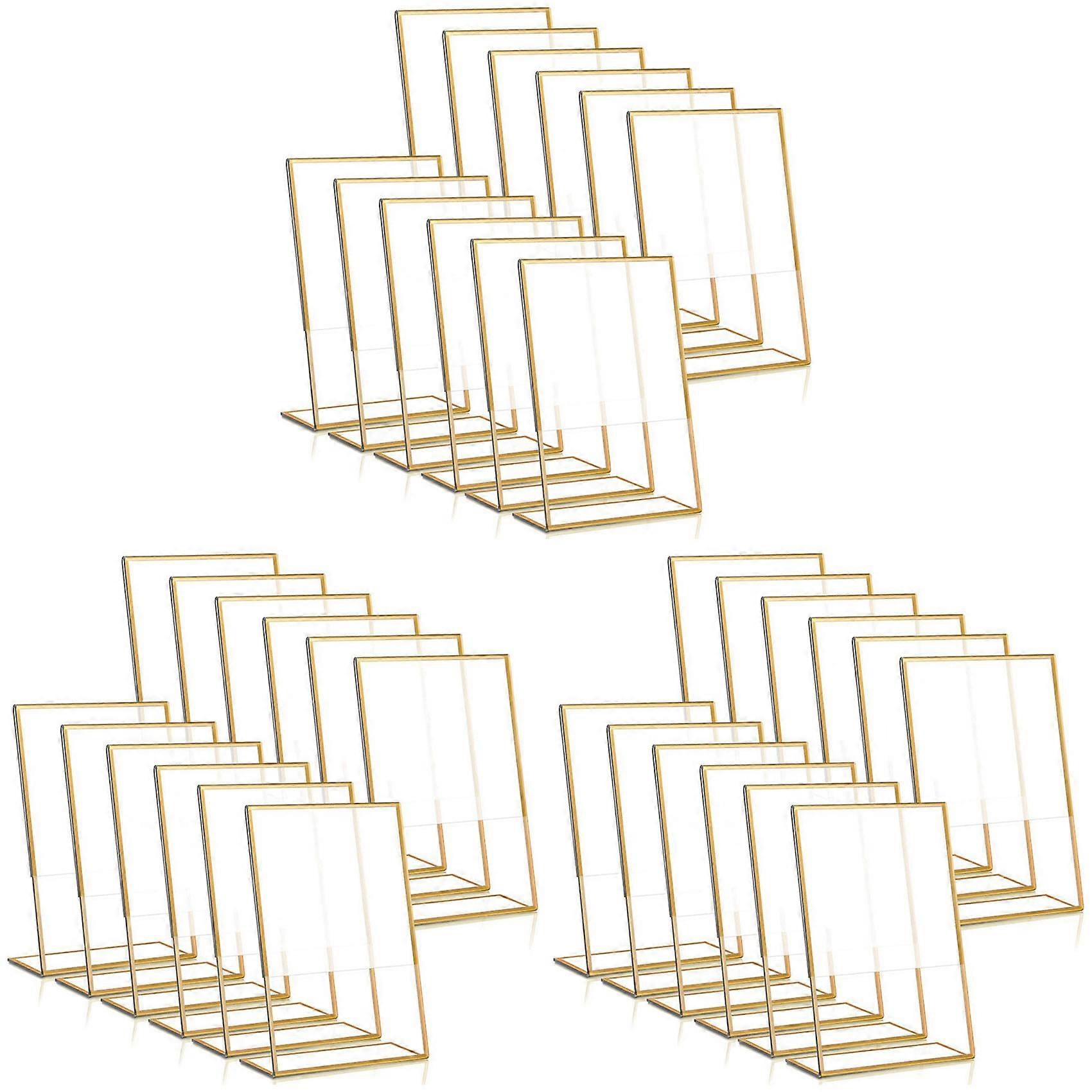 36PCS Gold Frame Acrylic Sign Holder Wedding Table Number Holder Slanted Menu Double Sided Stand, 4X6Inch Vertical