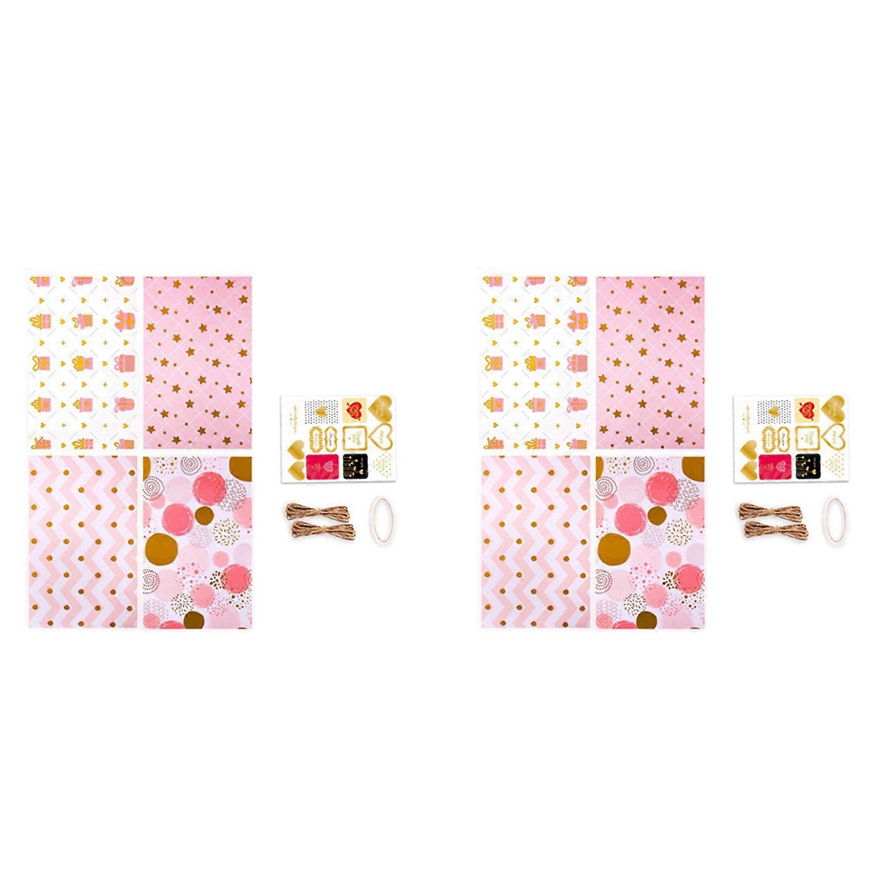 2X Pink Gold Birthday Gift Wrapping Paper Girls Folded Sheets for Party,Wedding,Valentine's Day,All Occasion