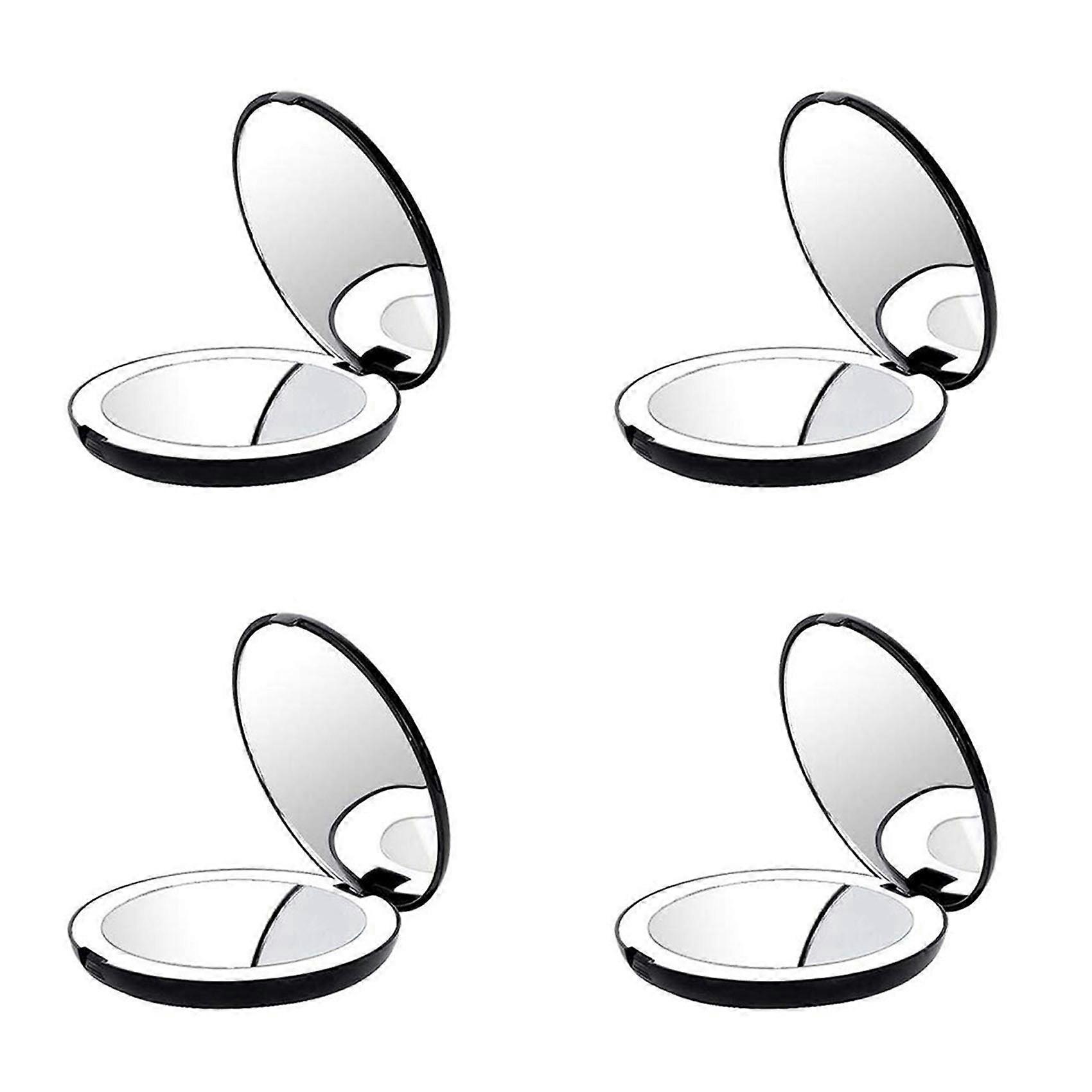 4X Portable Folding Mirror with LED Light Makeup Mirror, 10X Magnifying Glass, 12 Lamp Bead Mini Mirror Black