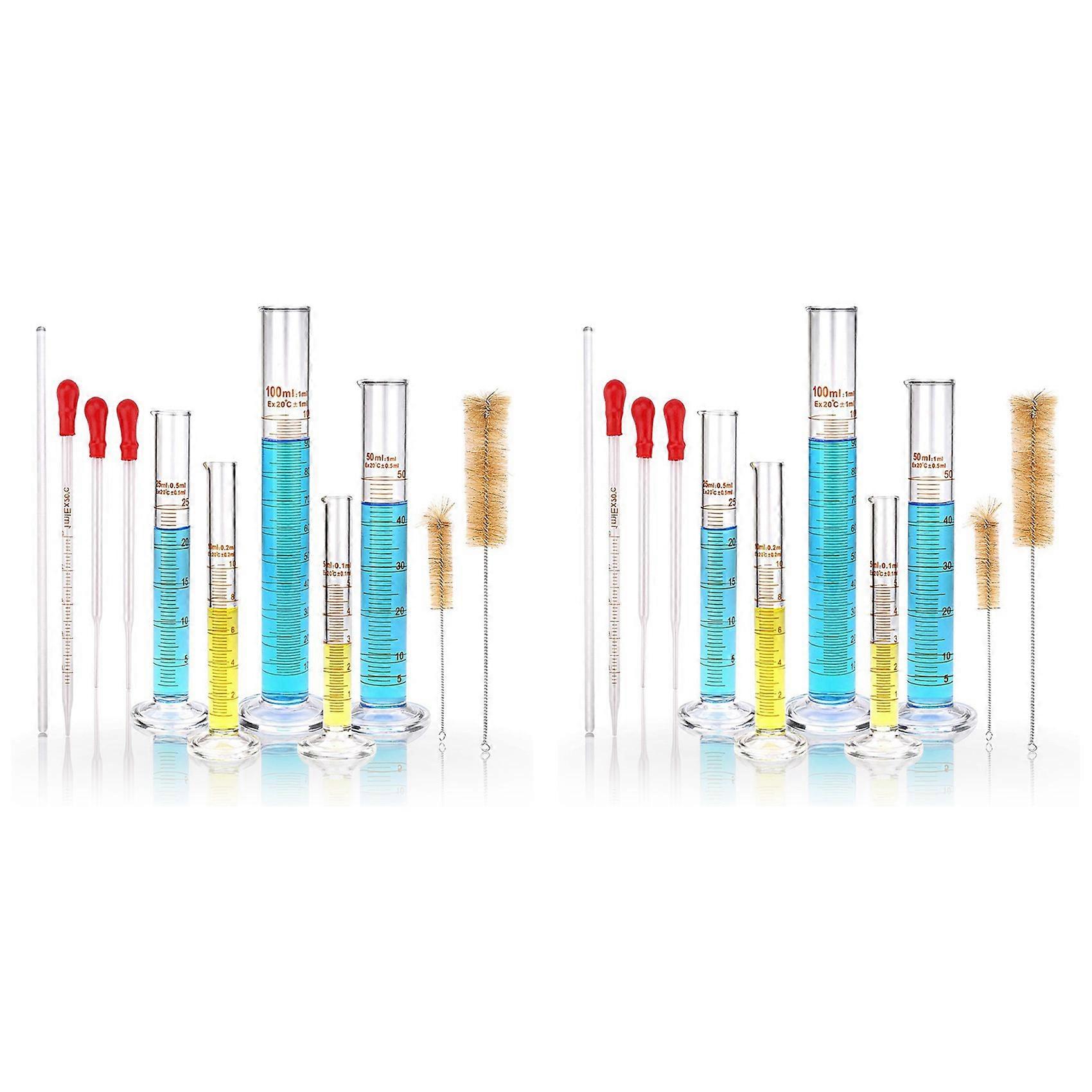 Glass Graduated Measuring Cylinders Set,Premium Borosilicate Cylinders Kit with 6 Pipettes+4 Brushes+2 Stirring Rod
