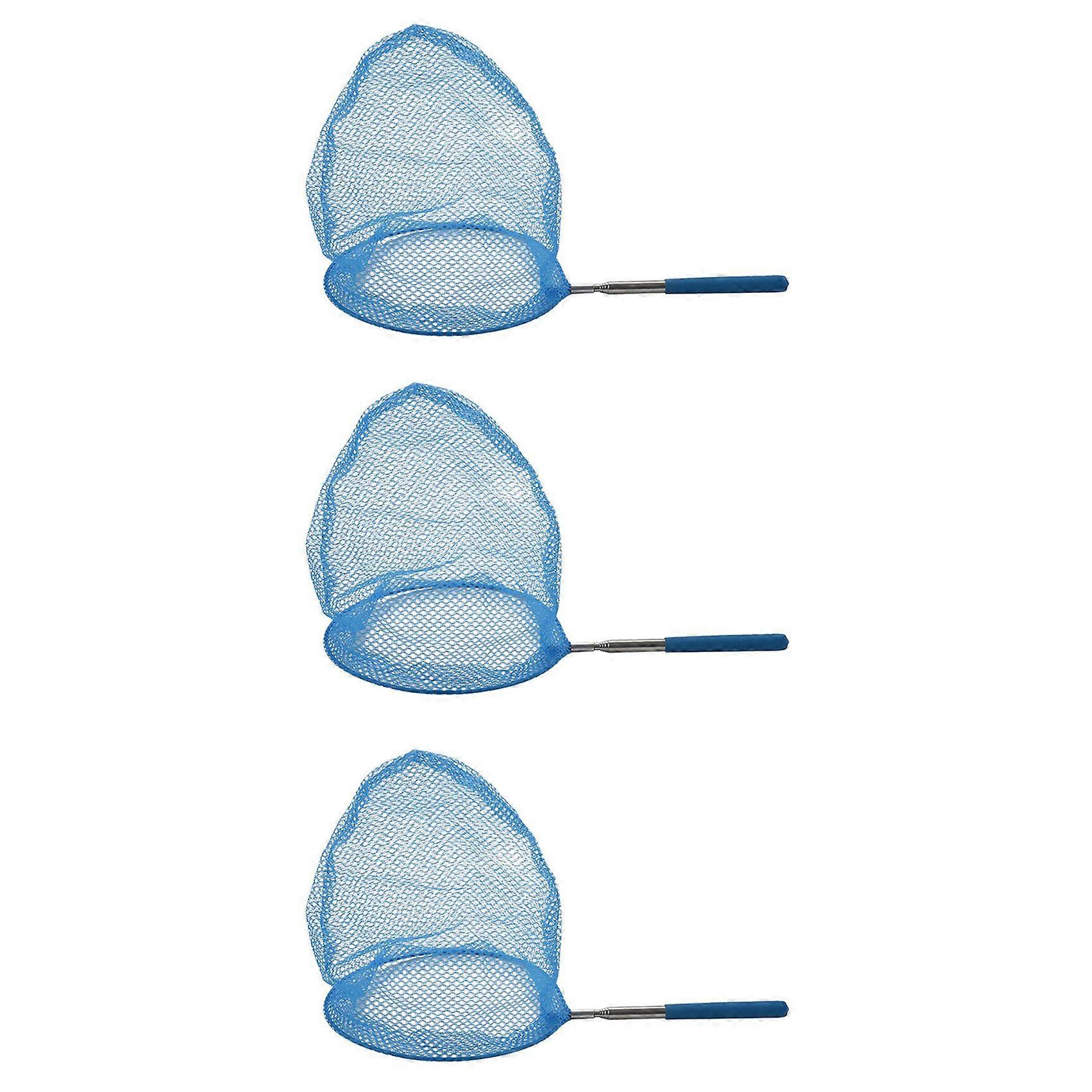 3X Outdoor Catching Catching Butterfly Net Fishing Net Bag Stainless Steel Telescopic Fishing Net Tool Blue