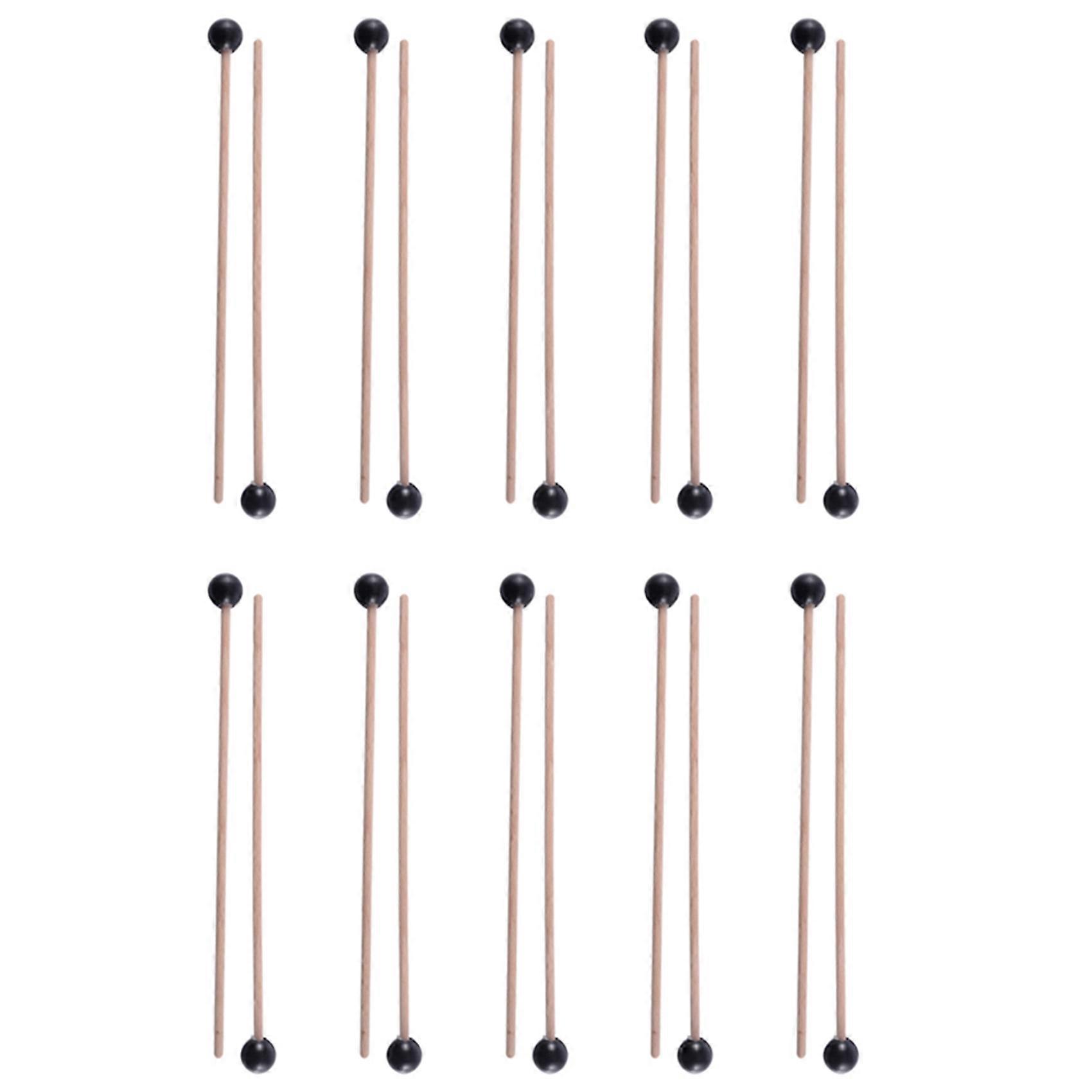 20Pcs Soft Rubber Head Sticks Wood Handle Bell Mallets for Glockenspiel Xylophone Bell Music Instruments Parts Black