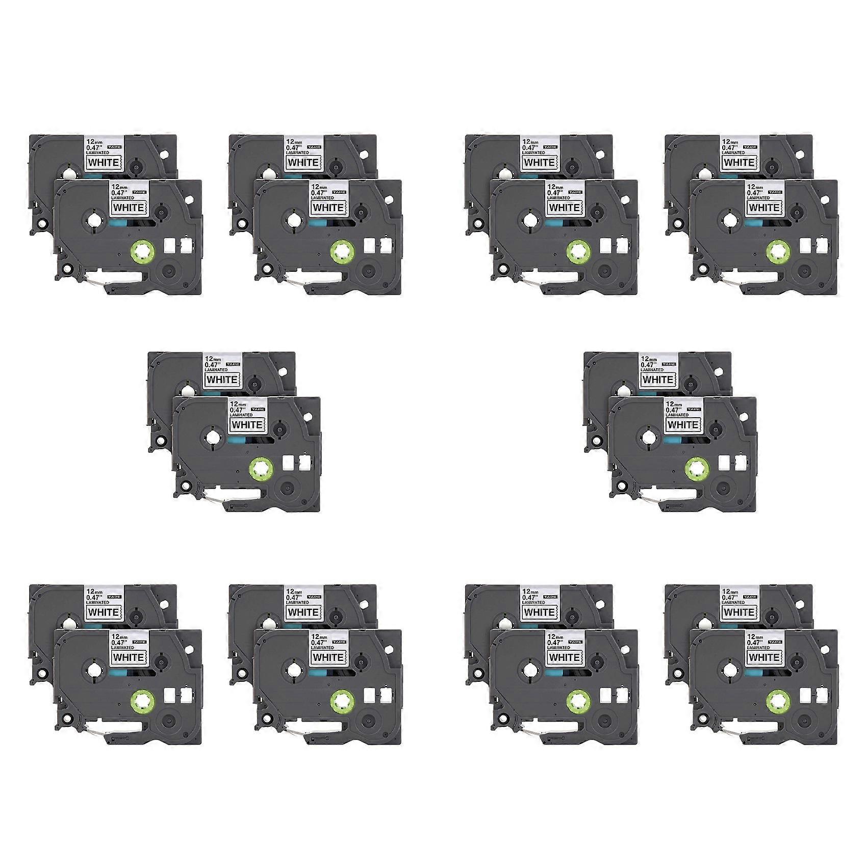 Label Tape Replacement for Brother P-Press TZe Label Tape 12mm 0.47 Inch Laminated 26.2 Feet Black on White(8M),20-Pack