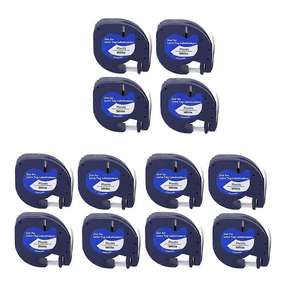 12 Pack Compatible Label Tape Replacement for Dymo Letratag Black on White Plastic Label Tape for LetraTag Label Maker