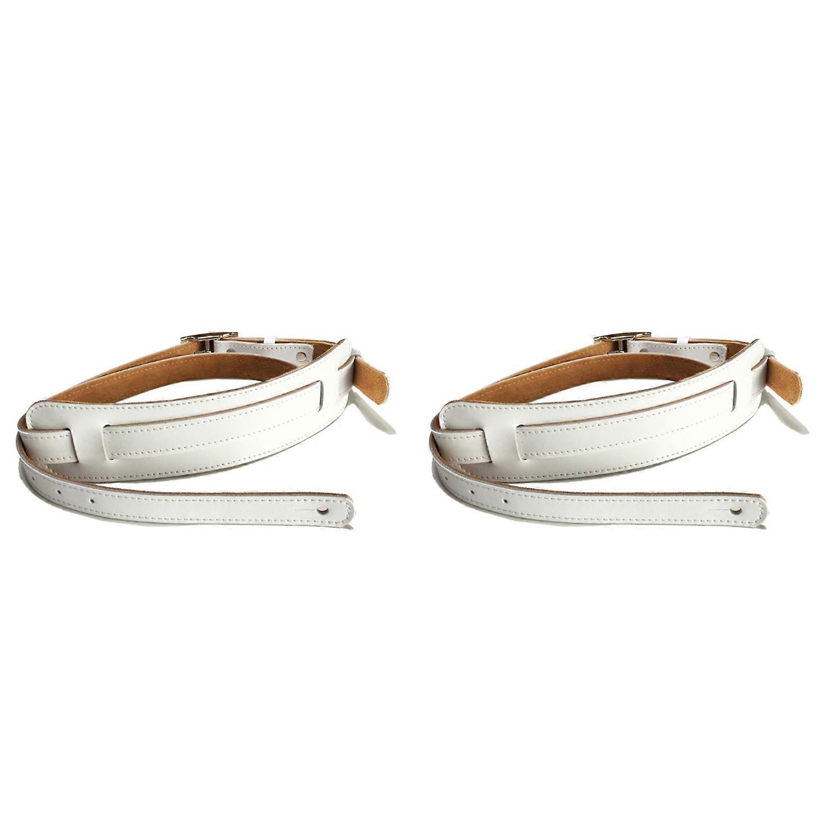 2X Durable Leather and Metal Buckle Electric Guitar Strap Belt Shoulder Pad Adjustable Vintage Guitar Straps-White Color