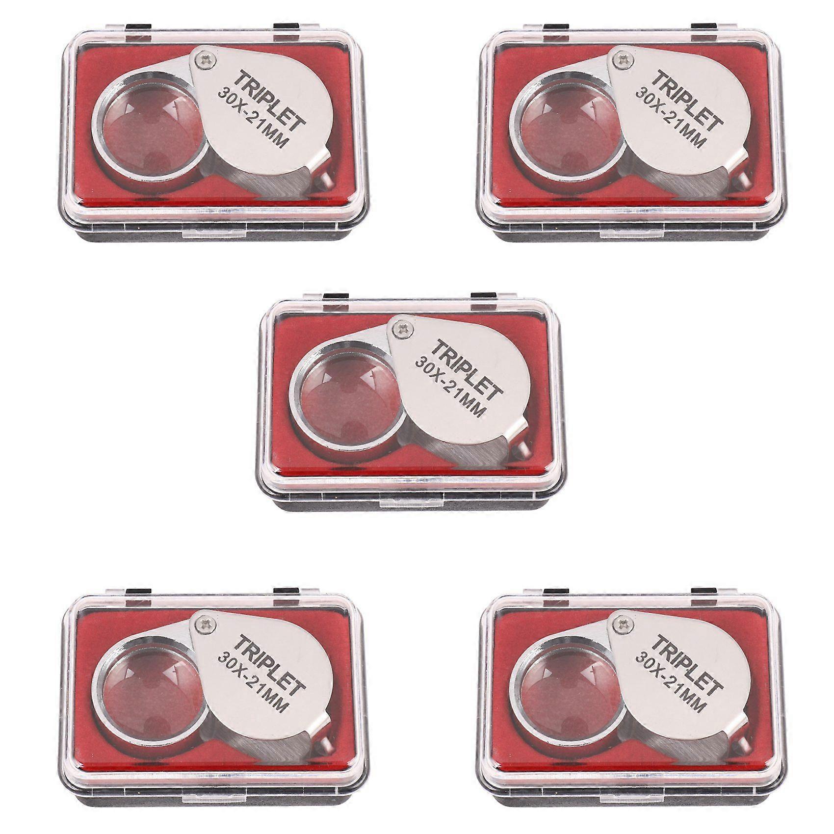 5pcs Portable 30x Power 21mm Jewelers Magnifier Gold Eye Loupe Jewelry Store Magnifying Glass with Exquisite Box