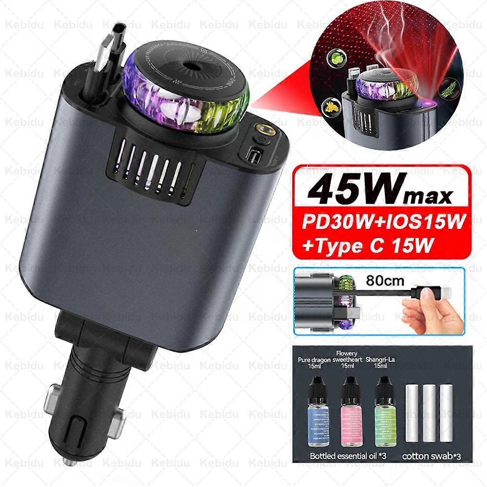 5-In-1 Car 45W Retractable Phone Charger with Type C PD Cable Aromatherapy Essential Diffuser Roof Starlight For IPhone Andriod