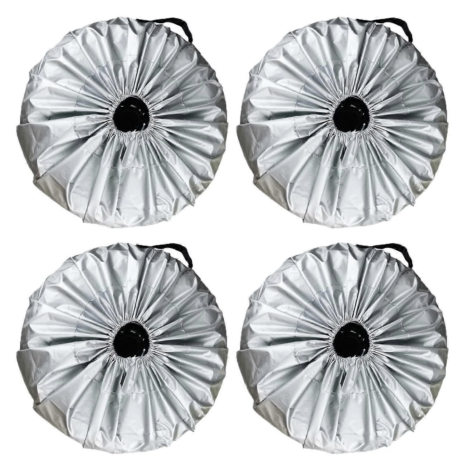 4pcs Durable Waterproof Spare Tire Covers and Storage Bags with Handles for 25.6 Inch Wheels Silver