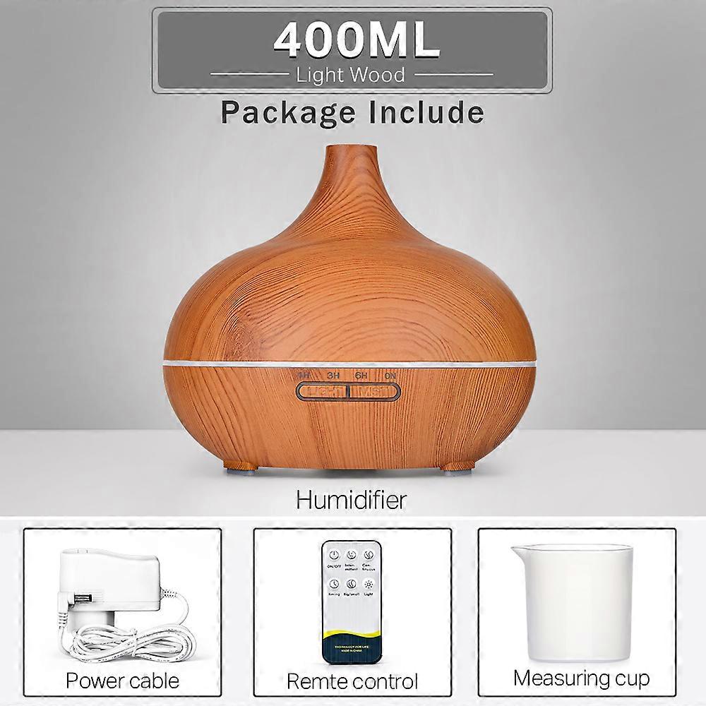 Aromatherapy Essential Oil Diffuser Wood Grain Remote Control Ultrasonic Air Humidifier Cool with 7 Color LED Light
