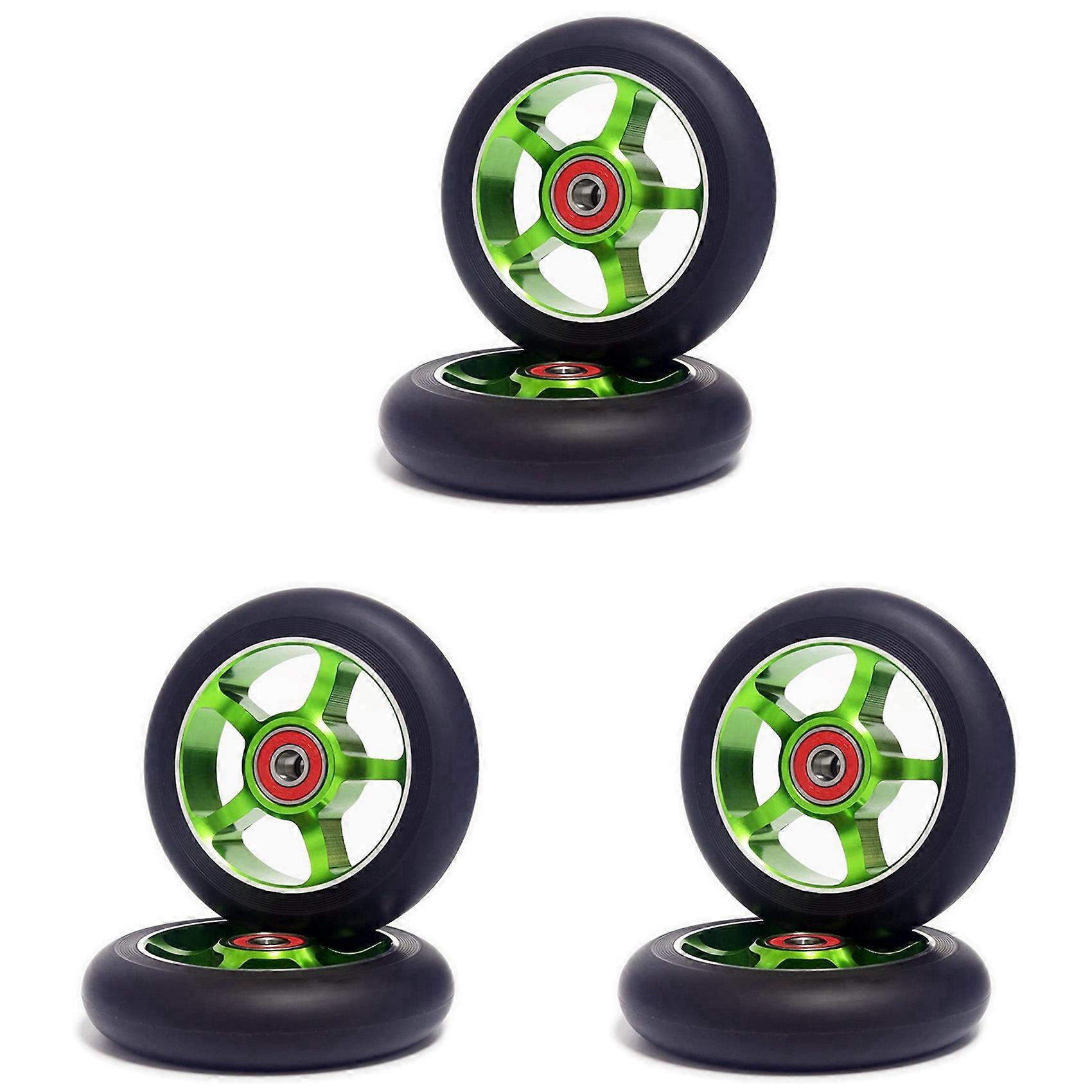 6Pcs 100mm Scooter Replacement Wheels with Bearings Aluminum Wear-Resistant PU Scooter Parts Scooter Accessories,Green