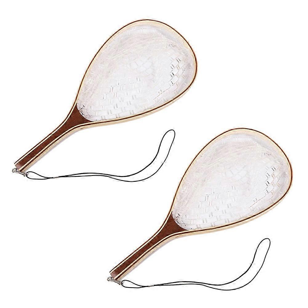 2X Fly Fishing Landing Net Trout Fishing Net, Soft Rubber Catch and Release Fish Net with Wooden Handle Frame