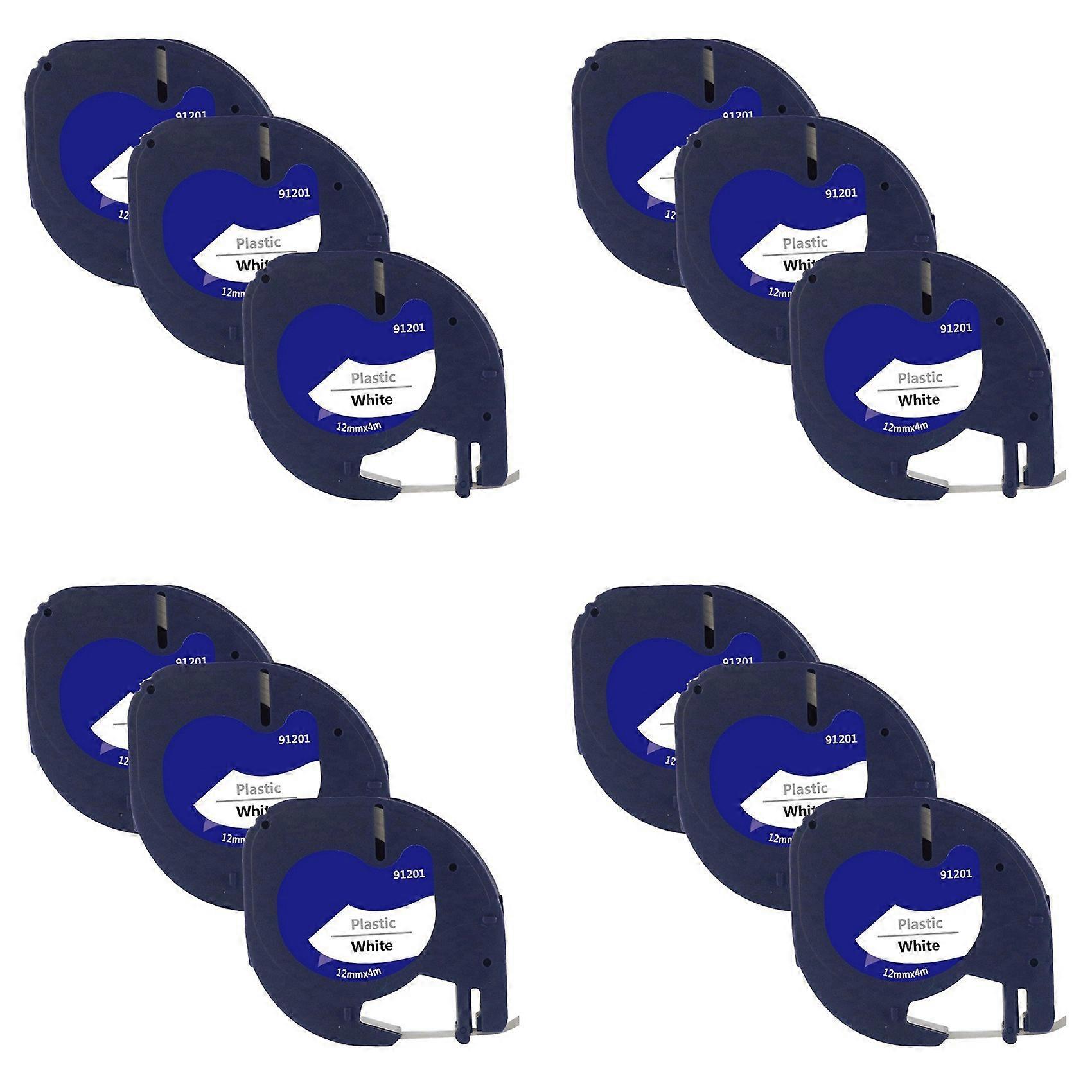 12Pcs Compatible Label Tape Replacement for Dymo Letratag Black on White Plastic Label Tape for LetraTag Label Maker