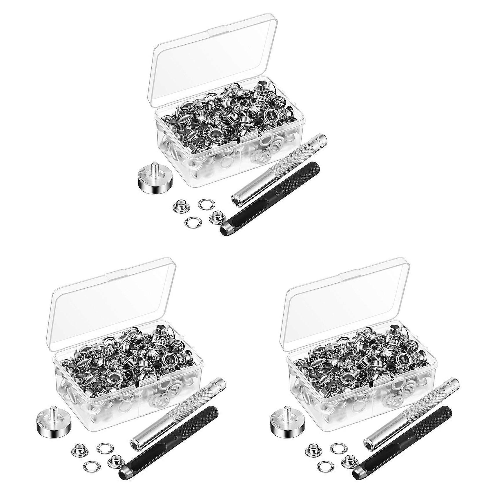 300Pcs Metal Eyelets Set 6mm Grommet Rings Kit with Mounting Punch Rod for DIY Accessories Leather Craft Clothing Repair