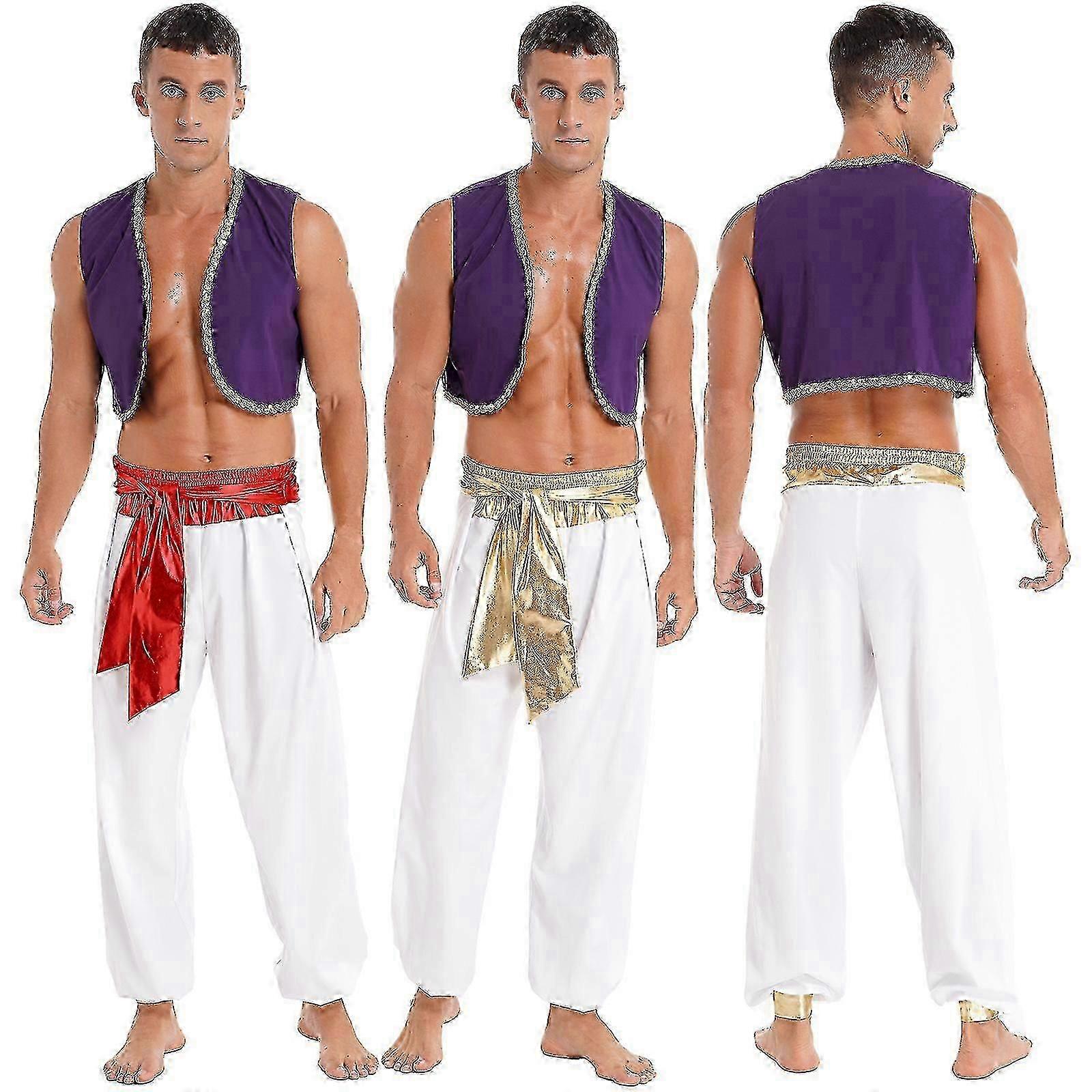 Mens Halloween Costume Mythical Prince Aladin Carnival Carnival Cosplay Party Outfit Sequin Trim Waistcoat With Belted Pants 25-26s