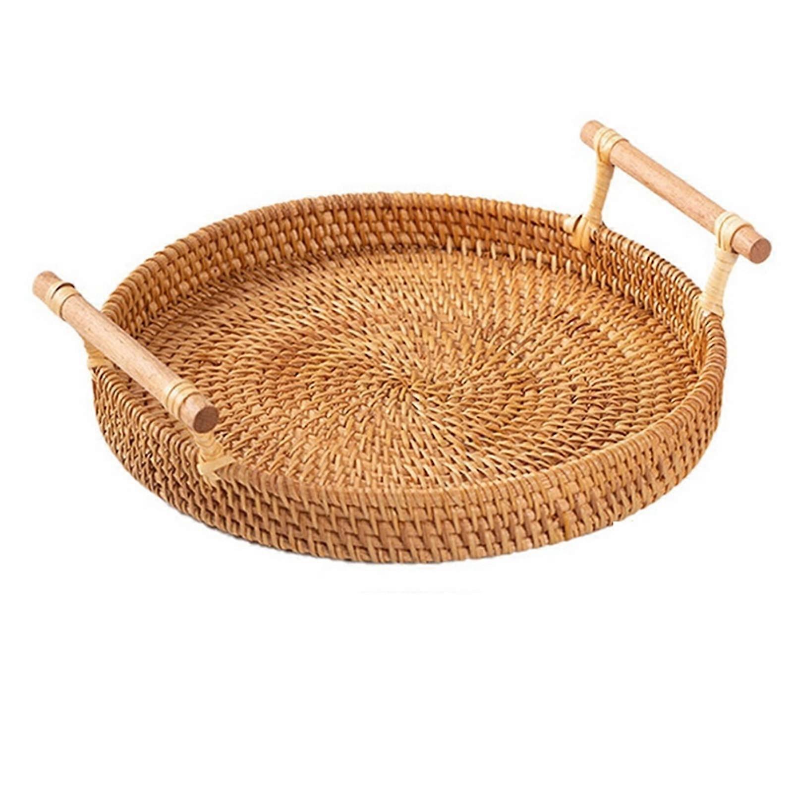 Large Handwoven Rattan Picnic Basket Round Wicker Storage for Bread Fruit MultiPurpose Use