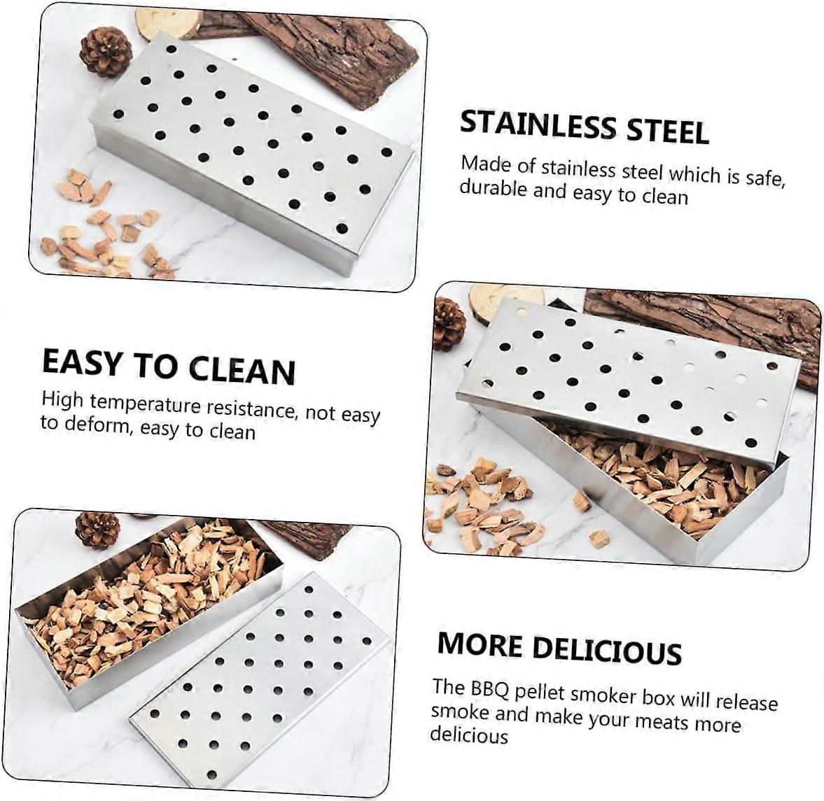 BBQ Smoker Box Stainless Steel for Wood Chips Charcoal Outdoor Grilling Enhances Smoke Flavor