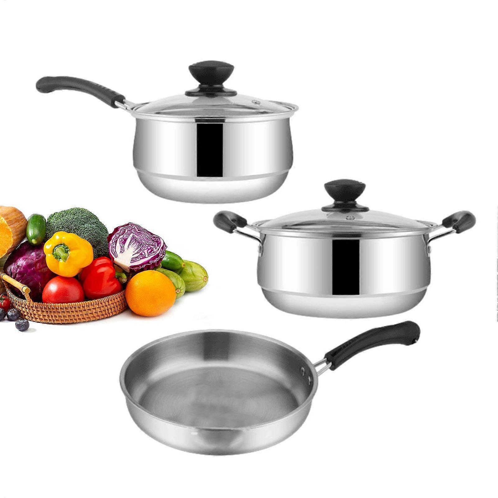 3 Piece Non Stick Cookware Set with Glass Lids, Even Heat Distribution, Ergonomic Grip