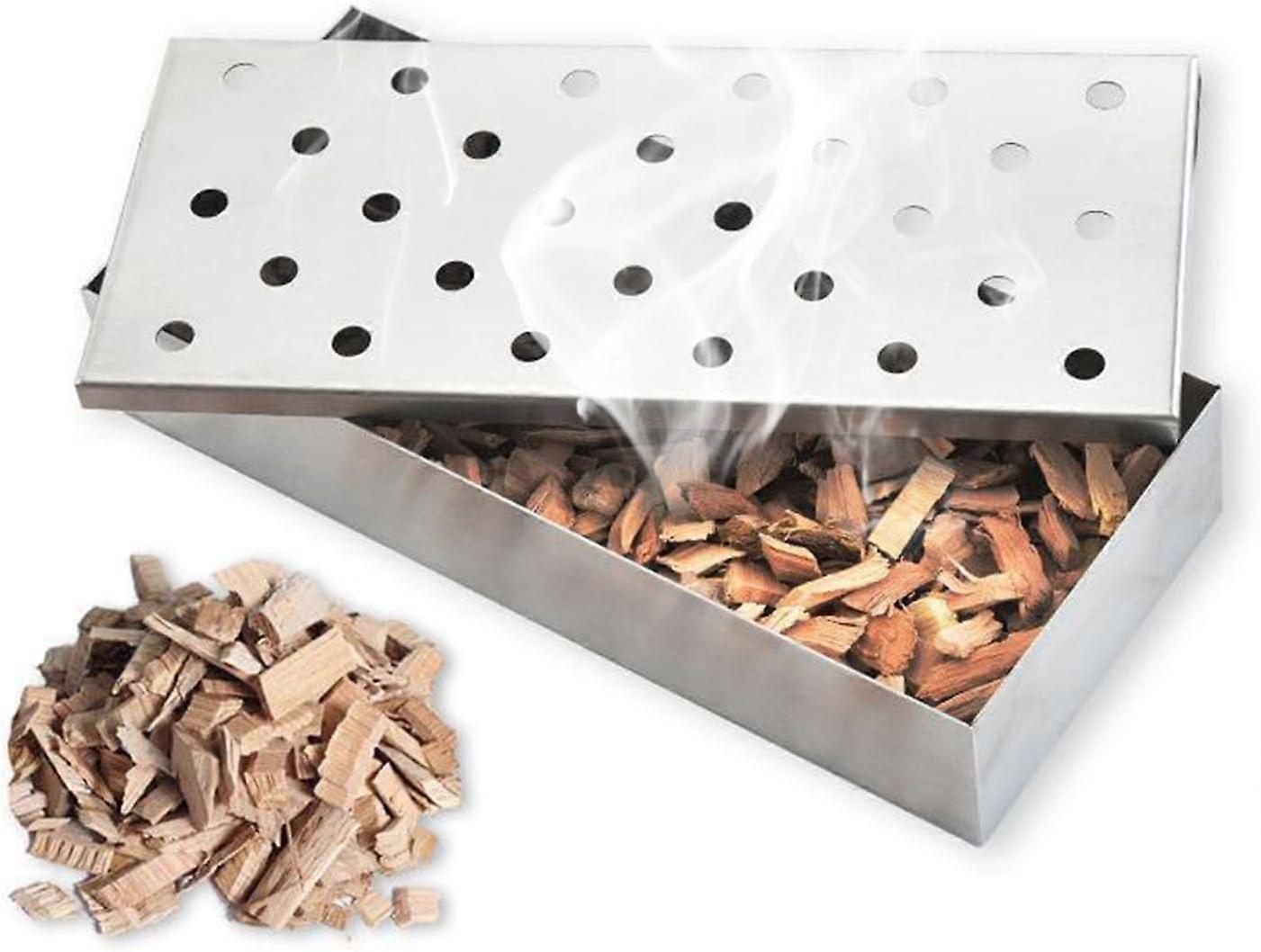 BBQ Smoker Box Stainless Steel for Gas or Charcoal Grill, Wood Chips, Rich Smoky Flavor