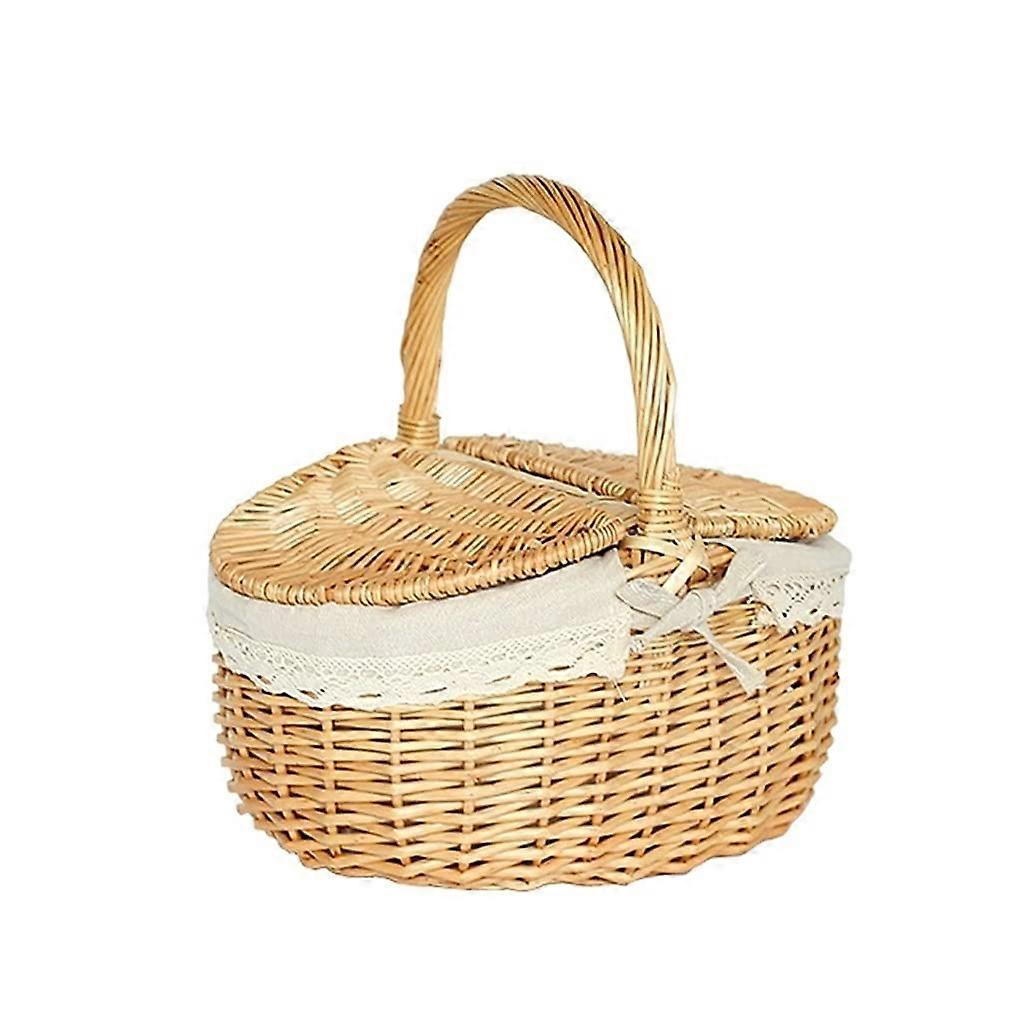 Wicker Picnic Basket for 23 People, Durable Handmade Hamper for Outdoor Camping and Party