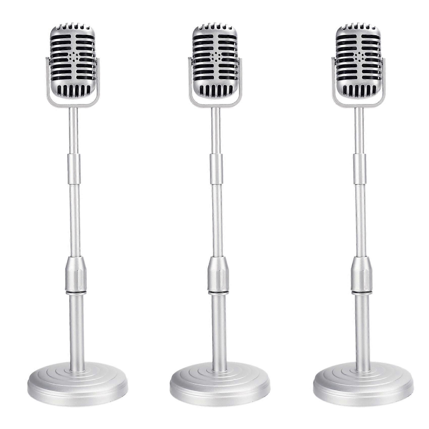 3X Desktop Microphone Prop Model with Adjustable Height, Classic Retro Style Microphone Stand Fake Mic Prop,Silver