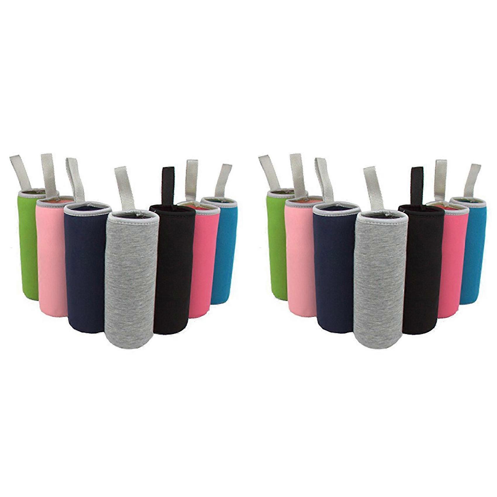 BOTTLE SLEEVE SIZE: Diameter 6.8cm, height 18cm. If the diameter of your bottle between 2 - 2.6 inch (5-6.6cm), then it would fit. In other words, it fit for 12 to 18 oz glass or plastic bottle. STRETCHY MATERIAL: The sport bottle sleeve is made of durable neoprene. It feel soft, stretchy and lightweigh, keep water cool or warm, and keep bottles from sweating. The sleeves rim hugs the bottle snugly, easy to take on and off. Finger strap is strong to hold the bottle. It will protect your bottle from scratch damage and against hot. GOOD INSULATION: Good quality stitching connect the strap strongly to the holder. The glass bottle sleeve can protect the glass body from damage and against hot. Not afraid of the crease, because it can repair itself. Portable neoprene bottle sleeve is suitable and very convenient for indoor and outdoors use, such as camping, swimming, driving, fishing and other activities. It is also easy to clean, and weather resistant. 7pcs different color of bottle sleeves. it is really affordable. It will help keep your beverage cold or hot. You can use different colors every day in one week. How cool! Use it to protect your cup, and enjoy your life. Color: Multi-color Material: Neoprene Size: 18 cm in length, 6.6 cm in diameter Package Contents: 2 X grey bottle sleeves 2 X black bottle sleeves 2 X blue bottle sleeves 2 X green bottle sleeves 2 X pink bottle sleeves 2 X rose red bottle sleeves 2 X navy blue bottle sleeves