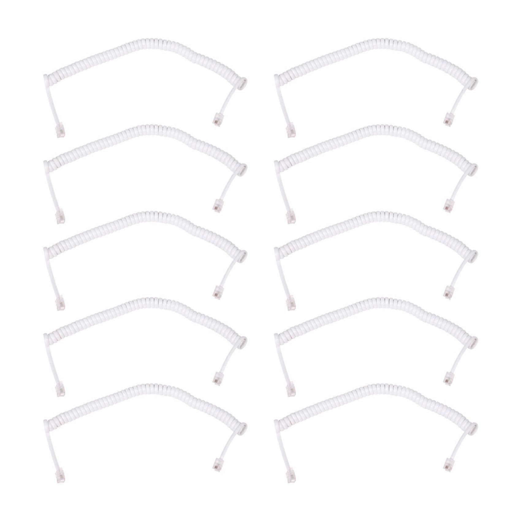 10pcs 1.5M 4.9Ft White Stretchy RJ9 4P4C Handset Telephone Coiled Cable Cord